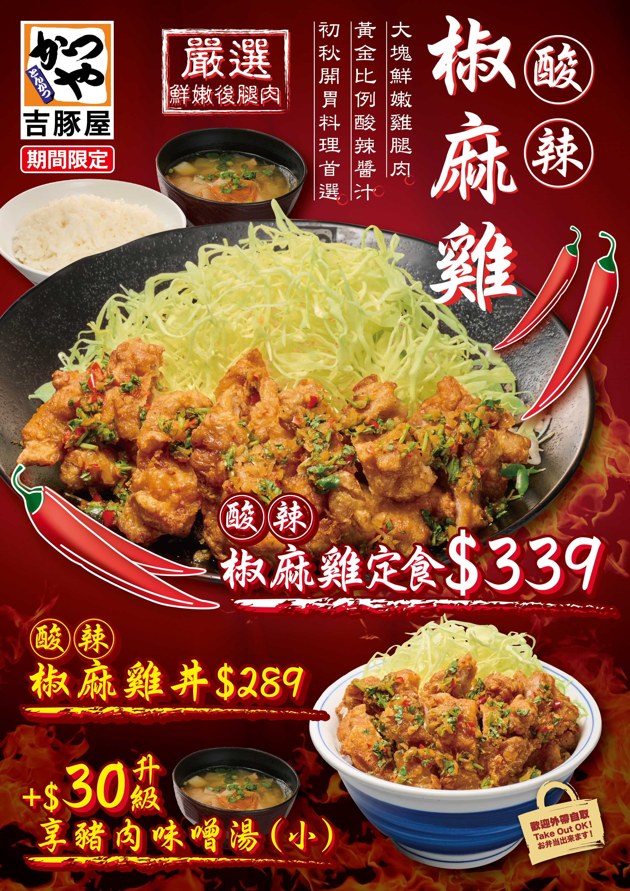 其淋上由鮮味魚露、辣椒、蒜末、檸檬汁、提味香菜等多種新鮮食材熬製而成的黃金比例酸辣醬汁,入口即可感受到酸辣相間的好滋味,層次感相當豐富。酸辣椒麻雞丼售價289元,加價30元即可升級可享豬肉味噌(小);酸辣椒麻雞定食則是以339元販售。