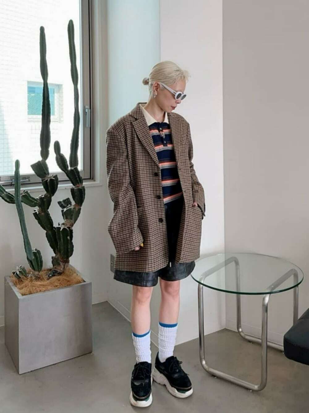 每到秋季便會回歸的西裝外套,很適合拿來與復古POLO條紋上衣混搭,例如以燈心絨西裝外套加上條紋上衣,下半身則可以搭配七分短褲、皮短褲,帶點鬆弛感的造型巧思,讓整體顯得高級又質感滿分,隨性踏上長靴或厚底鞋,展現大氣的日系時髦印象。