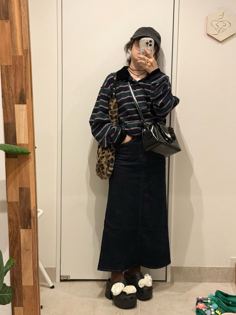 當懶得想搭配時,不妨嘗試以復古 POLO 條紋上衣 + 長裙,簡單不燒腦的混搭方式,看起來休閒又舒適,非常合適剛入秋的氣溫穿著,隨性戴上棒球帽,再揹個肩背包或托特包,便可快速有型出門。