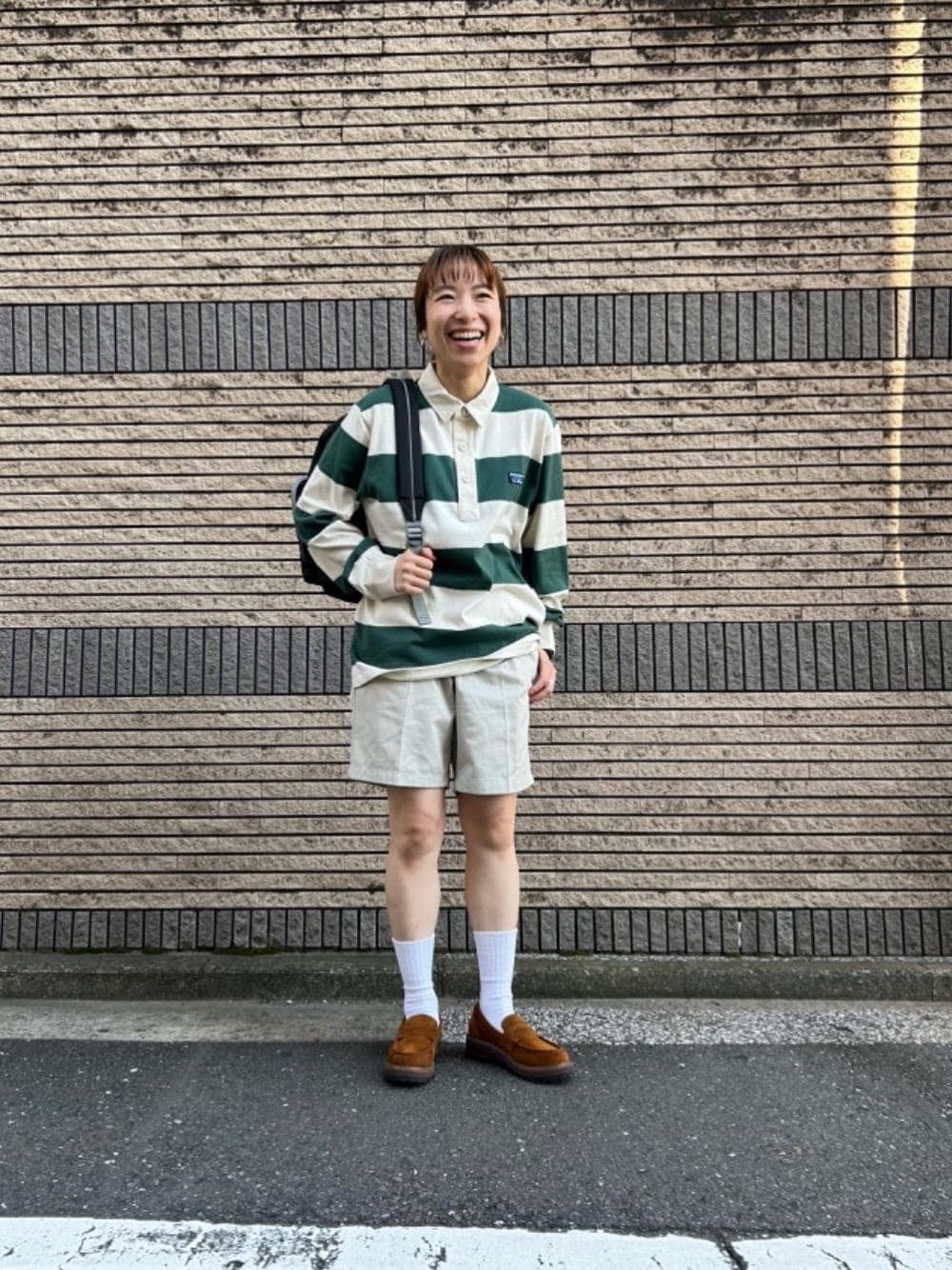 跳色組合的條紋上衣,給人一股輕復古感受,以 POLO 條紋上衣加上短褲,連結男孩感的中性印象,如果想讓復古氛圍更濃烈的話,推薦運用樂福鞋、球鞋與白色長襪混合,瞬間打造專屬個性的日系街頭 Look 。