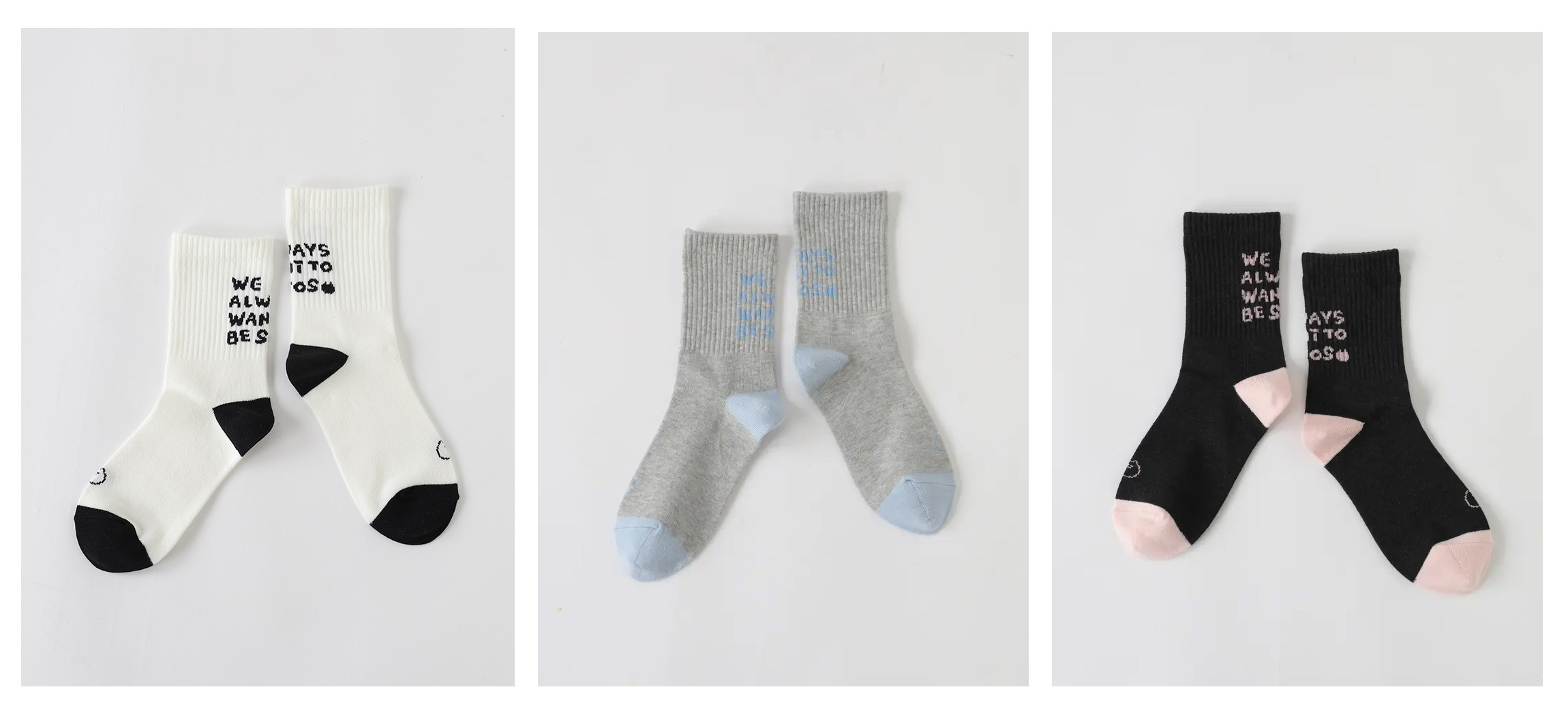 本次聯名的圖案設計總共有三種不同的款式,每一款都有三色可作搭配。第一款是在腳踝後方處寫著能象徵SOSO FAMILY品牌意義的英文slogan“WE ALWAYS WANT TO BE SOSO”。