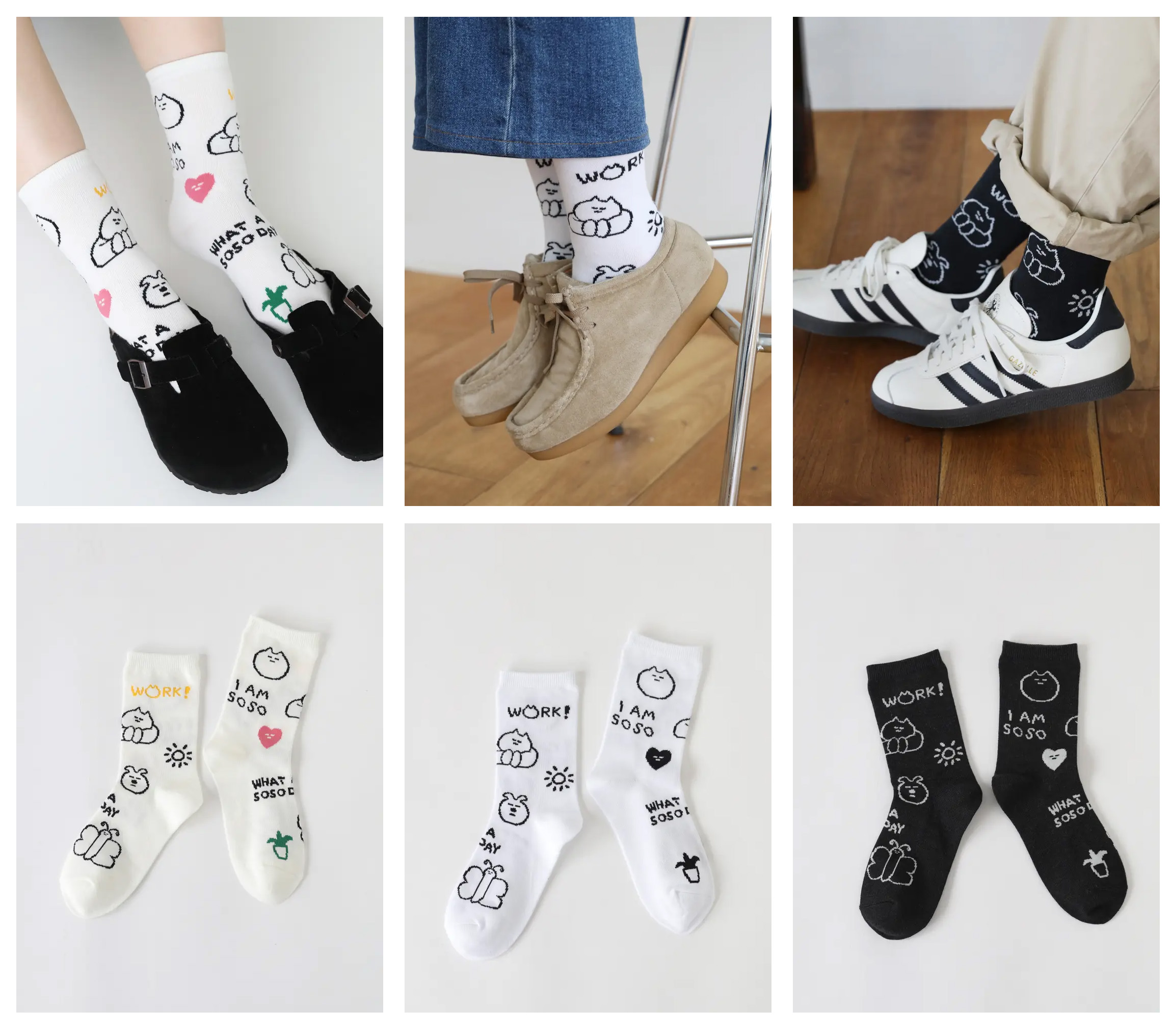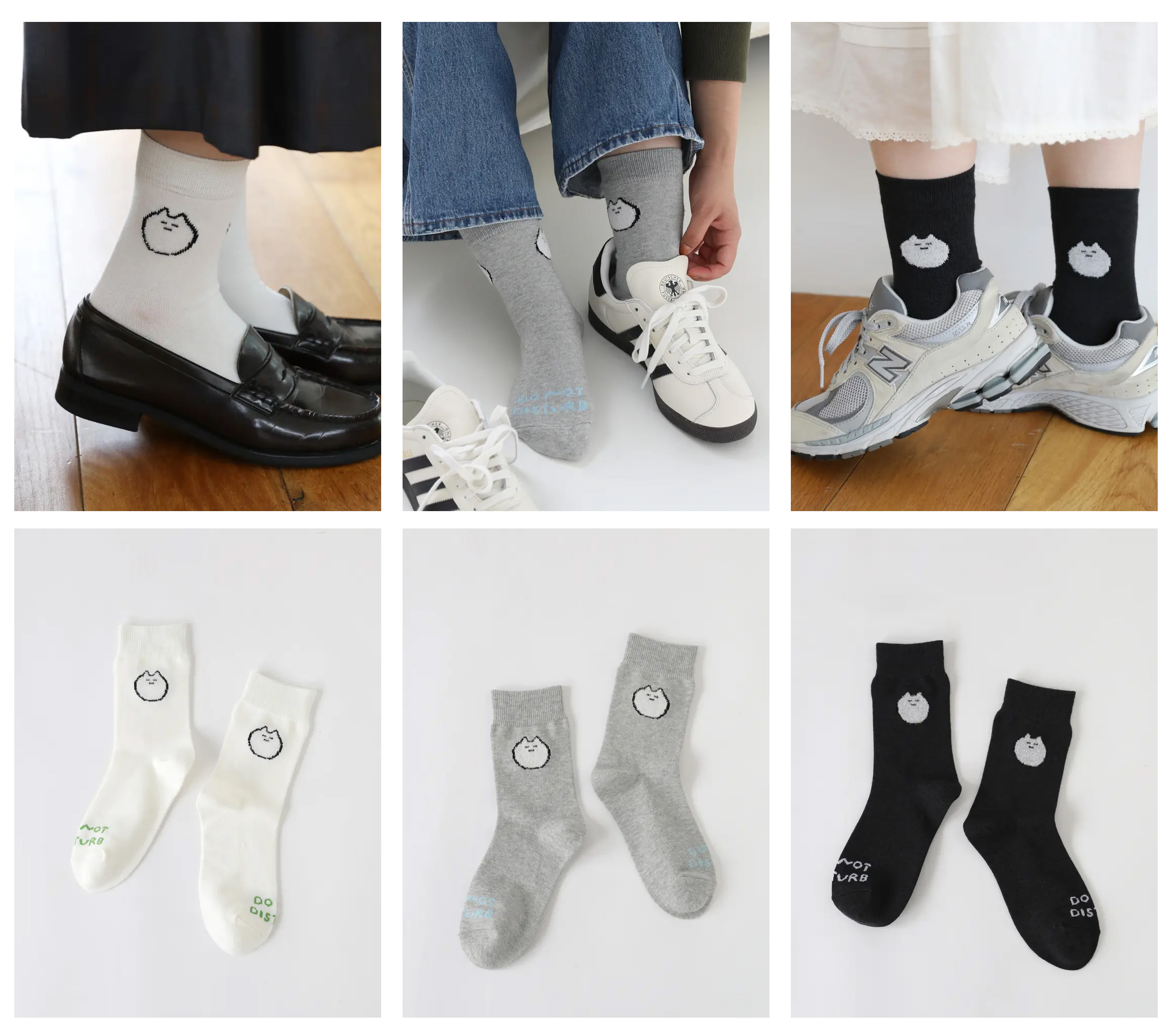 SOSO FAMILY的創作風格給了人一種新奇的療癒感,或許在生活當中有了這樣可愛的文創角色來點綴的話,也能為生活創造出讓人感到療癒的微小幸福。如果你也喜歡SOSO FAMILY,並且想為穿搭創造可愛亮點的話,不妨入手這系列聯名襪款吧!