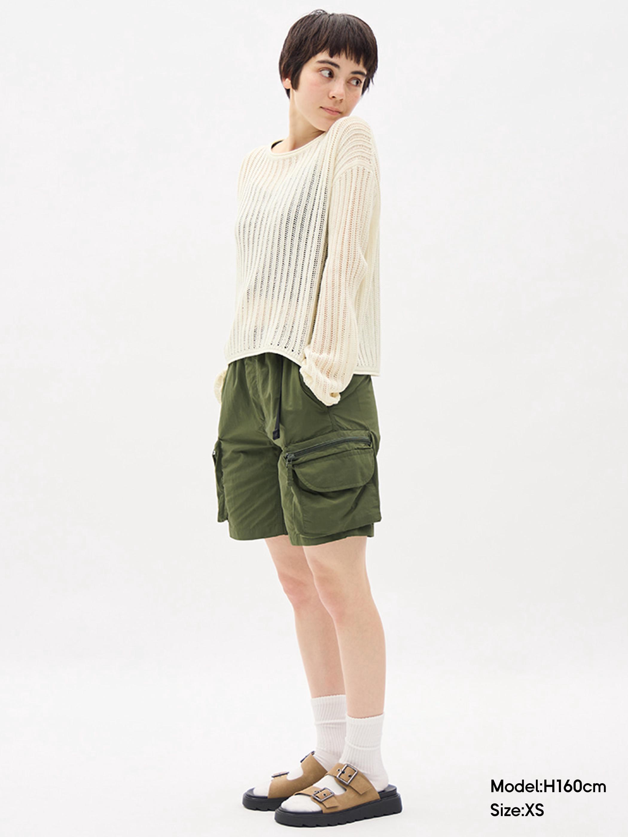 商品清單:五分袖休閒風T恤、尼龍工作短褲、綠色針織針織帽