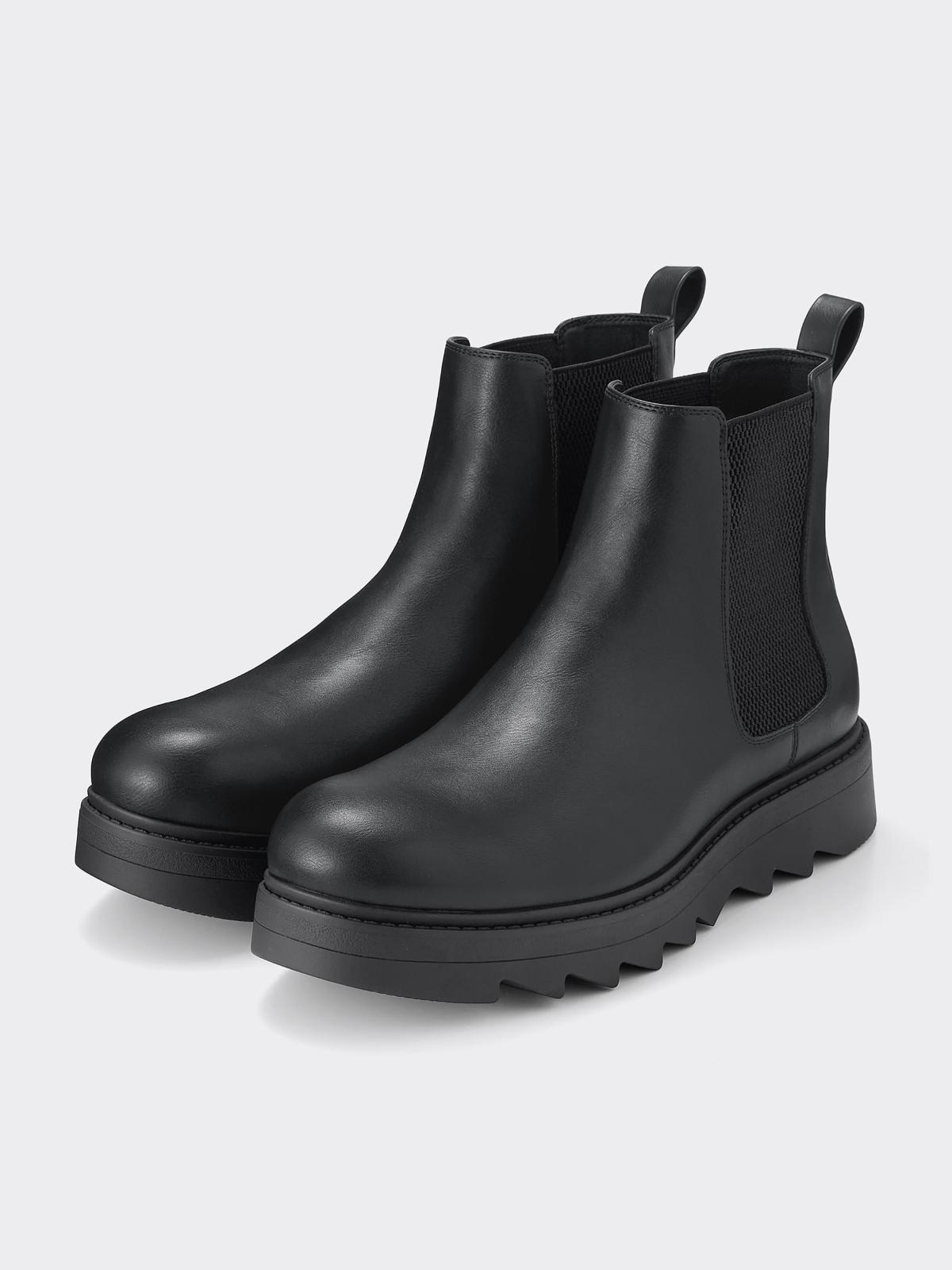 商品清單:水洗休閒連帽上衣、卡其雙打褶直筒褲、厚底側邊彈性靴