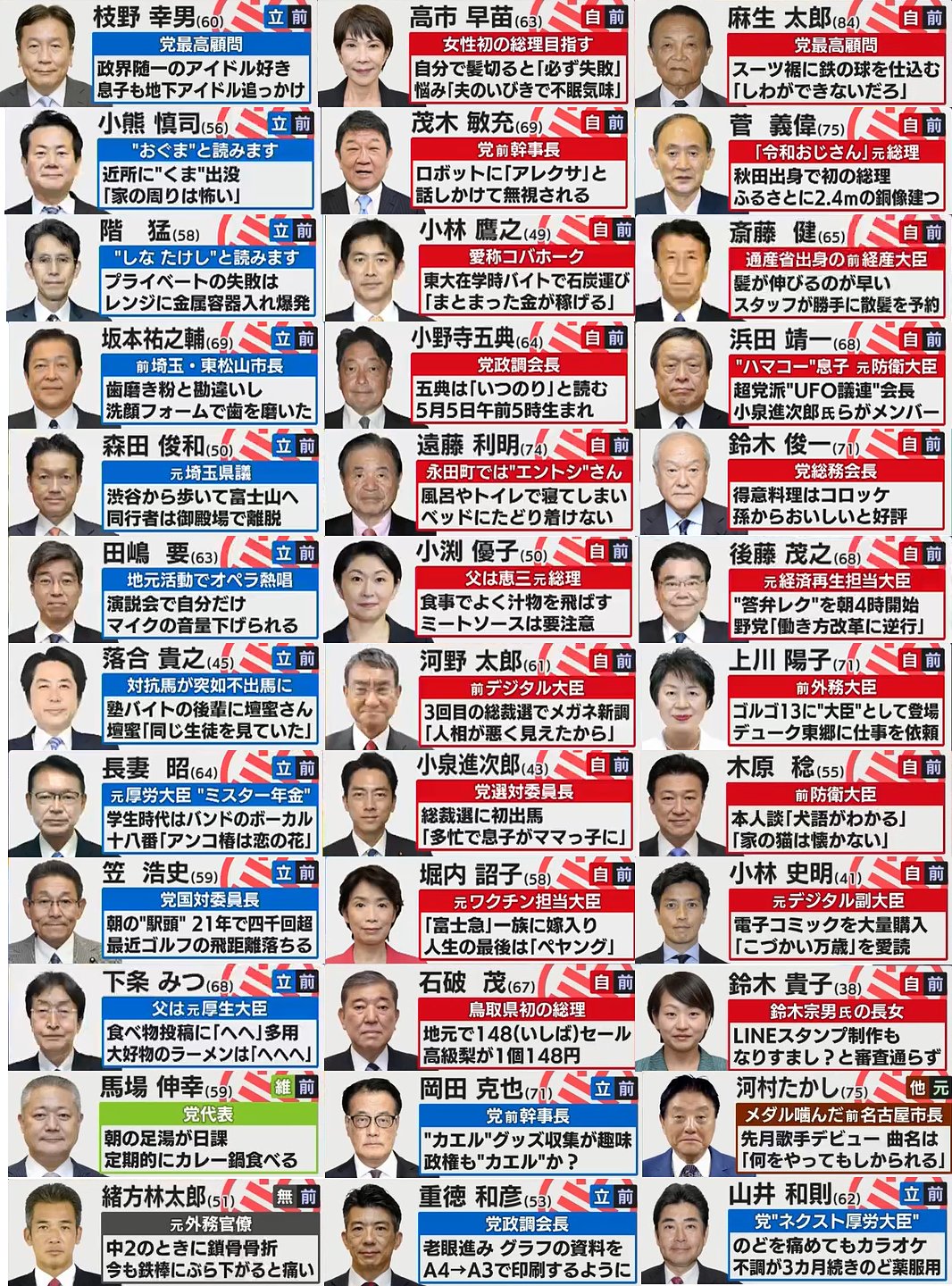 許多人對於今年夏天的東京都知事選舉想必還記憶猶新,除了有參選人在政見發表會時扮演成漫威電影中的小丑之外,還有參選人在途中直接脫下衣服,讓許多台灣人因為雙方的政治生態截然不同而跌破眼鏡。然而在今年十月底,日本眾議院的選舉結果也讓人大破眼鏡,但在這之外Japaholic編輯部想帶大家看一點輕鬆的話題,那就是在這次選舉中,有網友注意到了今年在電視台撥放開票時,各個選舉人奔放搞笑的自我介紹相當有趣,也幾乎是每次選舉的有趣看點,今天就讓我們來挑選幾則觀看吧!