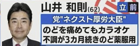接下來的這位山井和則參選人就有些亂來了,他的自我介紹是「在喉嚨受傷時還去唱卡拉OK,害得接下來的三個月喉嚨都不舒服,必須得一直吃藥。」大家可千萬不能模仿他,要好好珍惜自己的喉嚨喔!