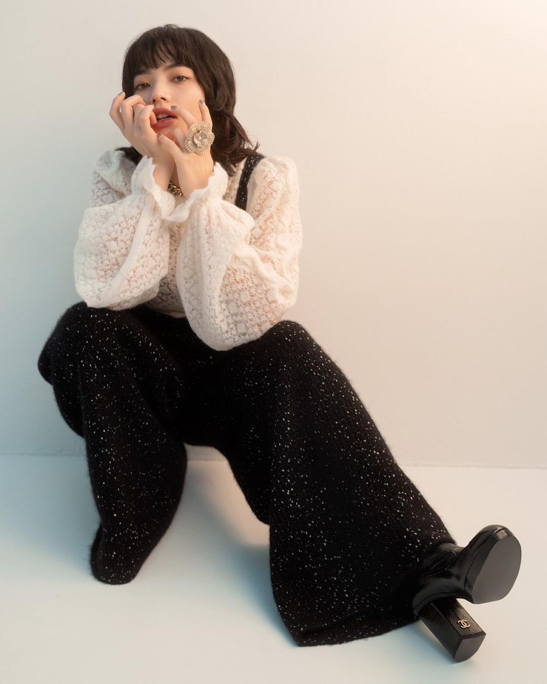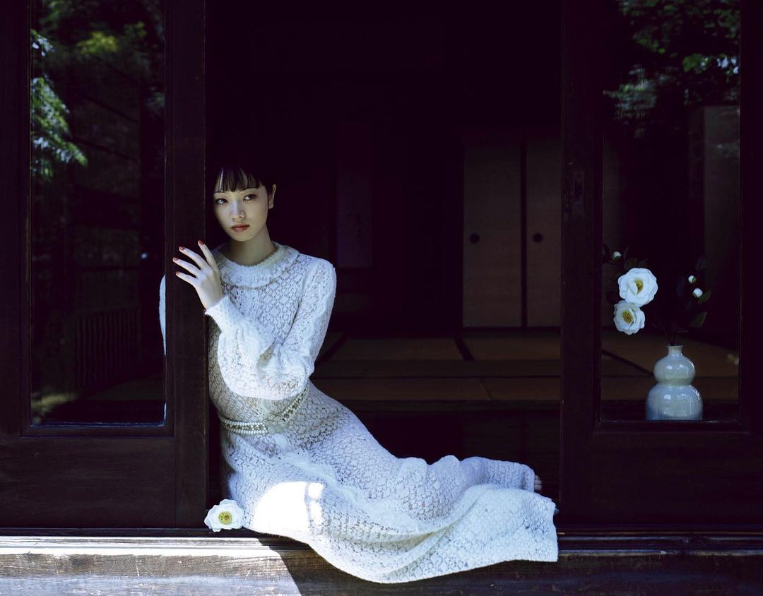 運用黑白為主的配色,使造型詮釋低調又個性的穿衣感受,以全白洋裝搭配一頭黑髮,高冷厭世的風格也只有小松菜奈辦得到,換上蕾絲罩衫與黑色長褲,打造令人著迷的滿分注目度。