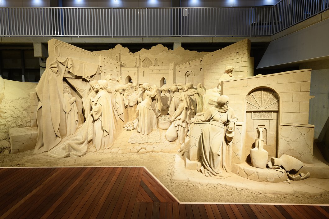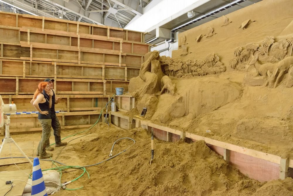 砂雕的製作極具巧思,使用的僅是砂丘的沙與水。每次展覽結束後,砂雕將被完全拆除,並重新使用這些沙子來創作新作品,讓砂雕呈現出如夢似幻、儚然而美的特質,這也是砂雕藝術深具吸引力的原因之一。