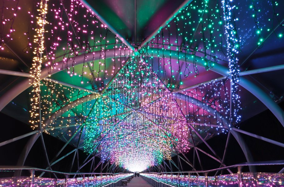 每年11月中旬至1月上旬,園內還會舉辦花卉燈光秀,約有100萬顆燈光點亮園區,與花卉相映成趣,營造出夢幻般的景象。公園設有全長1公里的有頂展望走廊,即使在下雨天也可以不撐傘觀賞花卉美景。