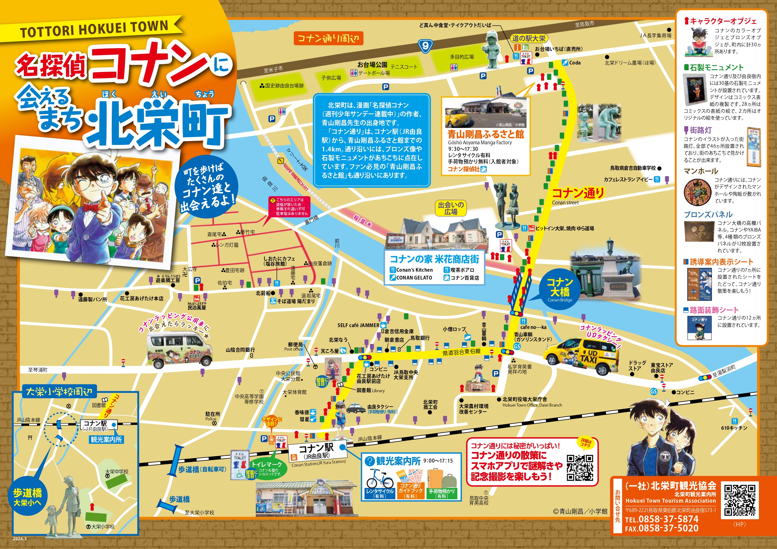 位於鳥取縣北榮町的柯南小鎮(名探偵コナンに会える道),是以人氣動漫《名偵探柯南》為主題打造的特色景點。這個小鎮是作者青山剛昌的故鄉,將他筆下的名偵探柯南的世界融入當地的文化與景觀中,吸引了大量的動漫迷前來朝聖。