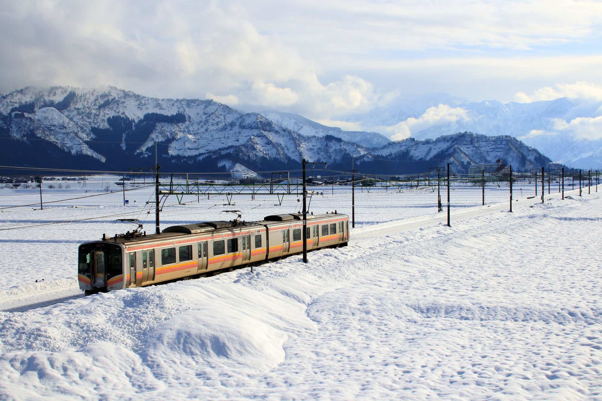 將目標往南放一些,連結長野縣松本市至新潟縣糸魚川市的大糸線,也是冬天不可錯過的鐵道路線。搭乘大糸線,途中會經過田園小鎮安曇野和滑雪勝地白馬。安曇野市坐落在北阿爾卑斯山腳下,連綿的積雪山峰環繞四周,您可以漫步於幽靜的田野小路、探訪充滿藝術氣息的博物館,來一場洗淨身心靈的冬日之旅;而沿著北阿爾卑斯山的白馬山麓延伸近30公里,則是世界知名的滑雪勝地「白馬山谷」,其廣闊的土地及優質的粉雪,加上溫泉飯店、超過20座的滑雪場,除了是許多滑雪初學者的首選,更吸引了來自世界各地的冬季運動愛好者!