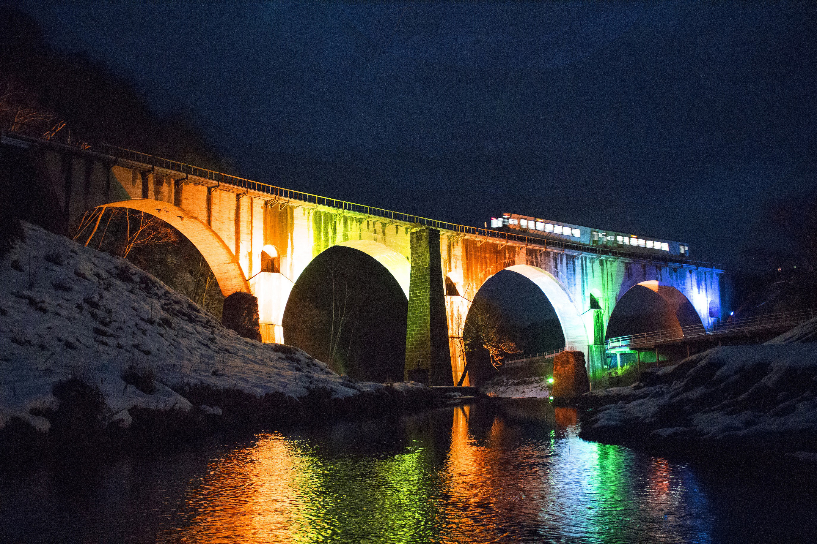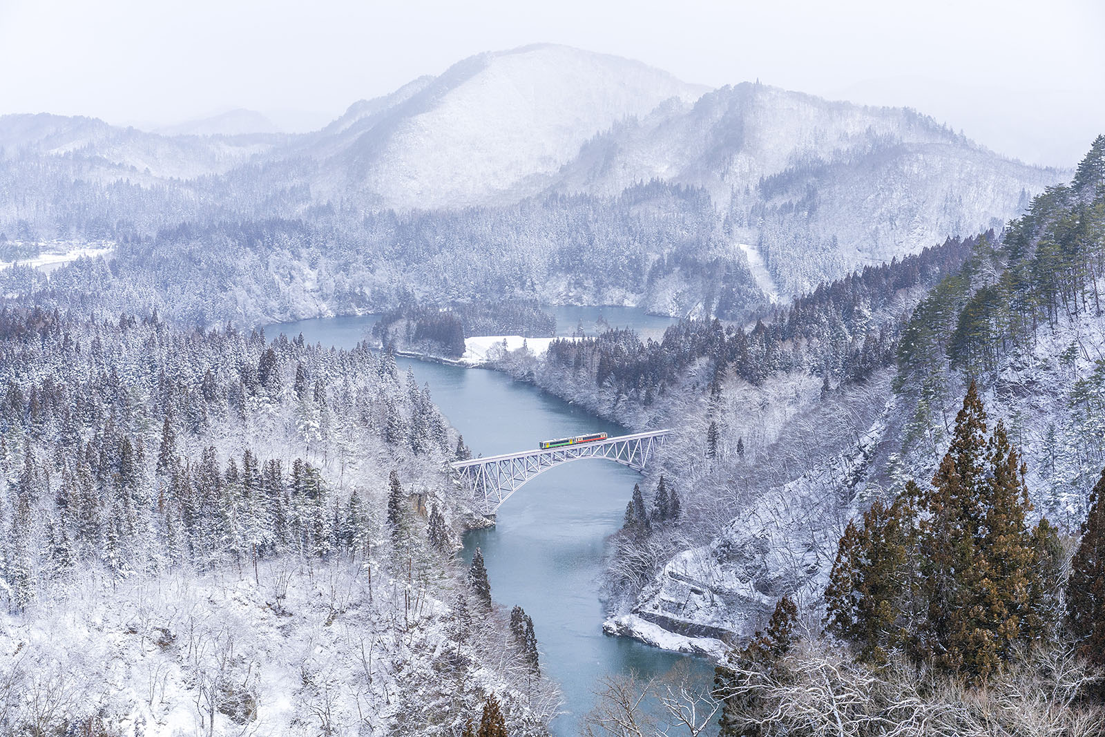 被評選為日本雪景最美鐵道的只見線,始自福島縣會津若松站,途中經過8座鐵橋,而這之中最著名的就是「只見川第一橋梁」。鐵橋聳立於河谷,兩側的樹木染上層層白雪,搭配列車駛出的畫面,偉大而動人、壯闊而浪漫,令所有看過的人一生無法忘懷。當然除了第一橋梁之外,第二至第四橋梁也都是吸引眾多鐵道迷的拍攝點,冬天時白雪紛飛、朦朧如畫般的鐵道橋樑絕景,讓人想要通通蒐集起來!