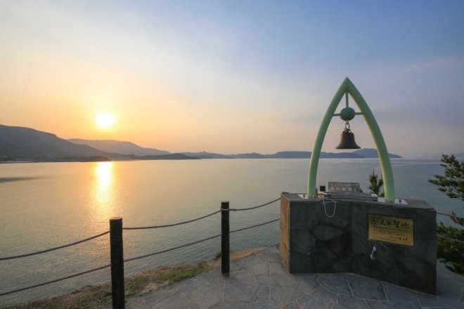位於瀨戶內海小豆島的「天使之路」是一處浪漫的自然景觀,因其獨特的潮汐現象吸引眾多遊客。每天兩次退潮時,海中會出現一條沙洲小道,將本島與無人島連接起來。傳說中,與摯愛之人手牽手走過這條沙道,在沙洲中央,就會有天使降臨並實現願望。天使之路終點的弁天島上設有「約束之丘展望台」,可敲響幸福之鐘,因此這裡也被視為戀人們的聖地。