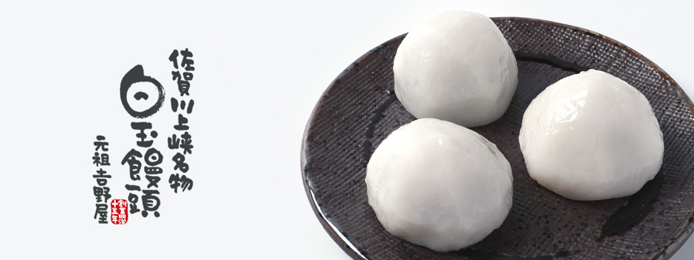 創業於1882年的元祖吉野屋,一直堅持維護川上峽名物「白玉饅頭」的傳統製法。「白玉饅頭」以來自精選農家的棚田米為原料,在精米後用使用傳統的石臼細磨成粉,再經過兩次蒸煮與兩次揉捏的精細工程,打造出獨特的細膩口感與彈性的外皮。餡料則是選用北海道產的紅豆並搭配高品質砂糖,慢火熬製,呈現出不甜膩但富有層次的優雅風味。