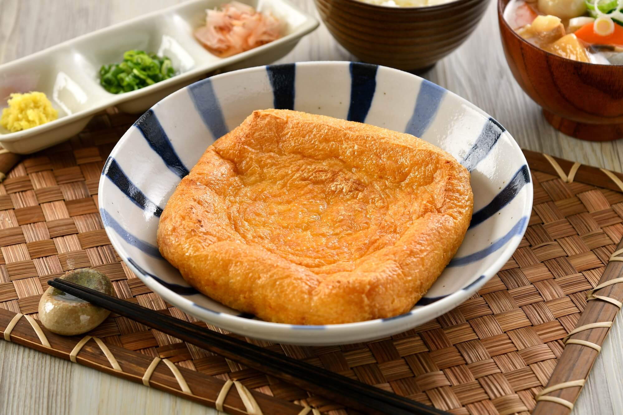 創業於1925年的谷口屋,是福井縣當地知名油炸豆腐老字號店鋪。人氣商品油炸豆腐(おあげ)選用100%國產黃豆,並使用福井縣越前町的越前苦鹽製成的豆腐,再以北海道產的100%純菜籽油,經過長時間細心炸製而成。一邊約14公分、厚度達3公分的特大尺寸油炸豆腐,外皮酥脆、內部多汁,宛如一塊豆腐漢堡排,是福井縣特有的美味體驗。