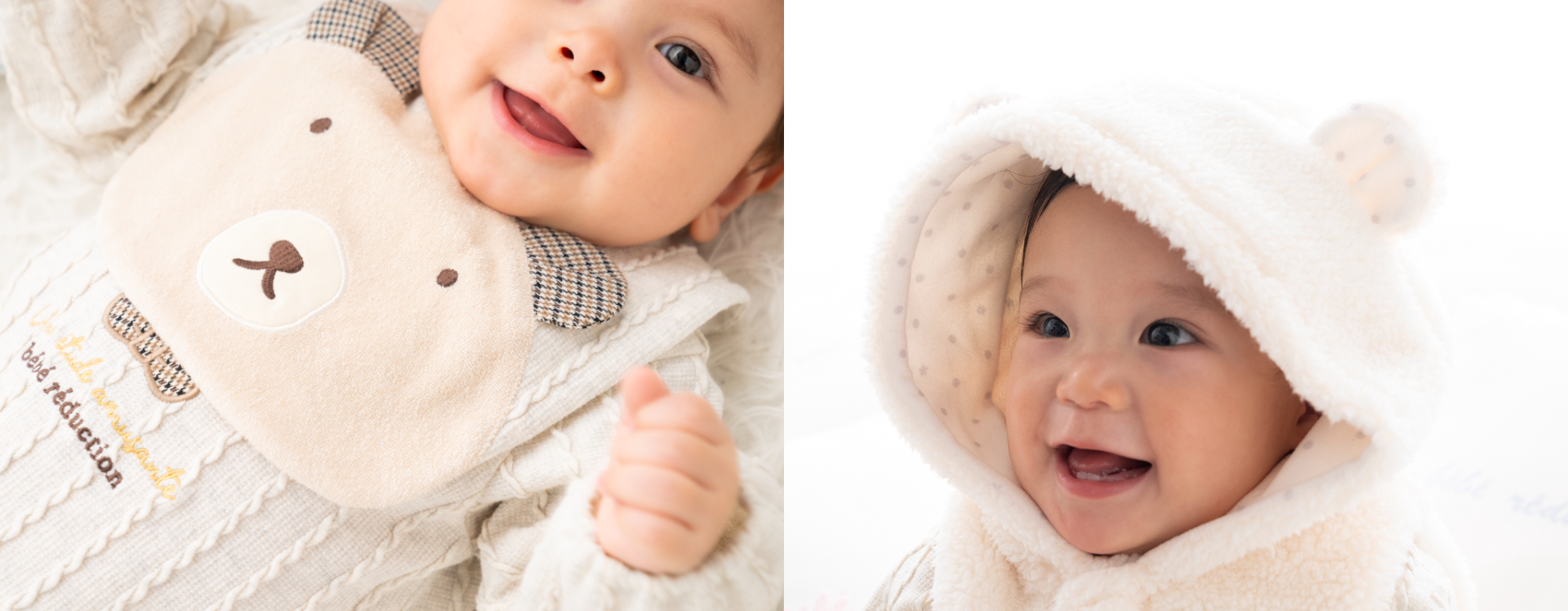 在日本有多達68間百貨門市的「fillot de bébé reduction」,以提供許多優雅簡約的嬰兒服飾,長期受到日本媽媽們的喜愛。系列包括原創角色「小熊麓麓」的商品,以及男女寶寶皆適合穿的小熊、兔子、恐龍等可愛的動物絨毛服飾。
