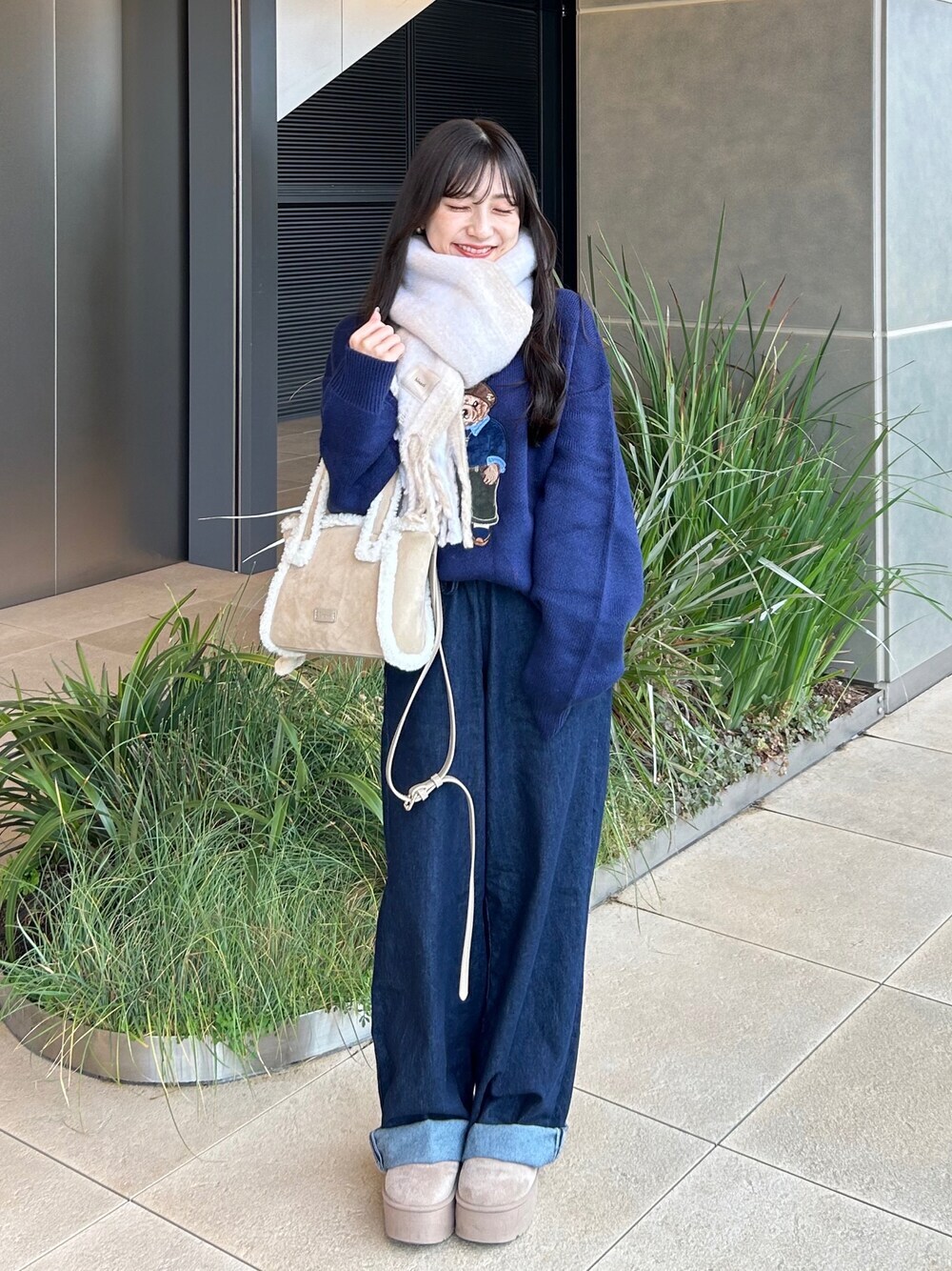 進階版的圍巾圍法,推薦先把圍巾繞在脖子上,並將剩餘圍巾兩側在中間打結,此圍法是日本女生最常見的造型之一,不僅看起來保暖度十足,也讓衣著重點更加凸顯,不論混搭毛衣或大學 TEE 都很好看。