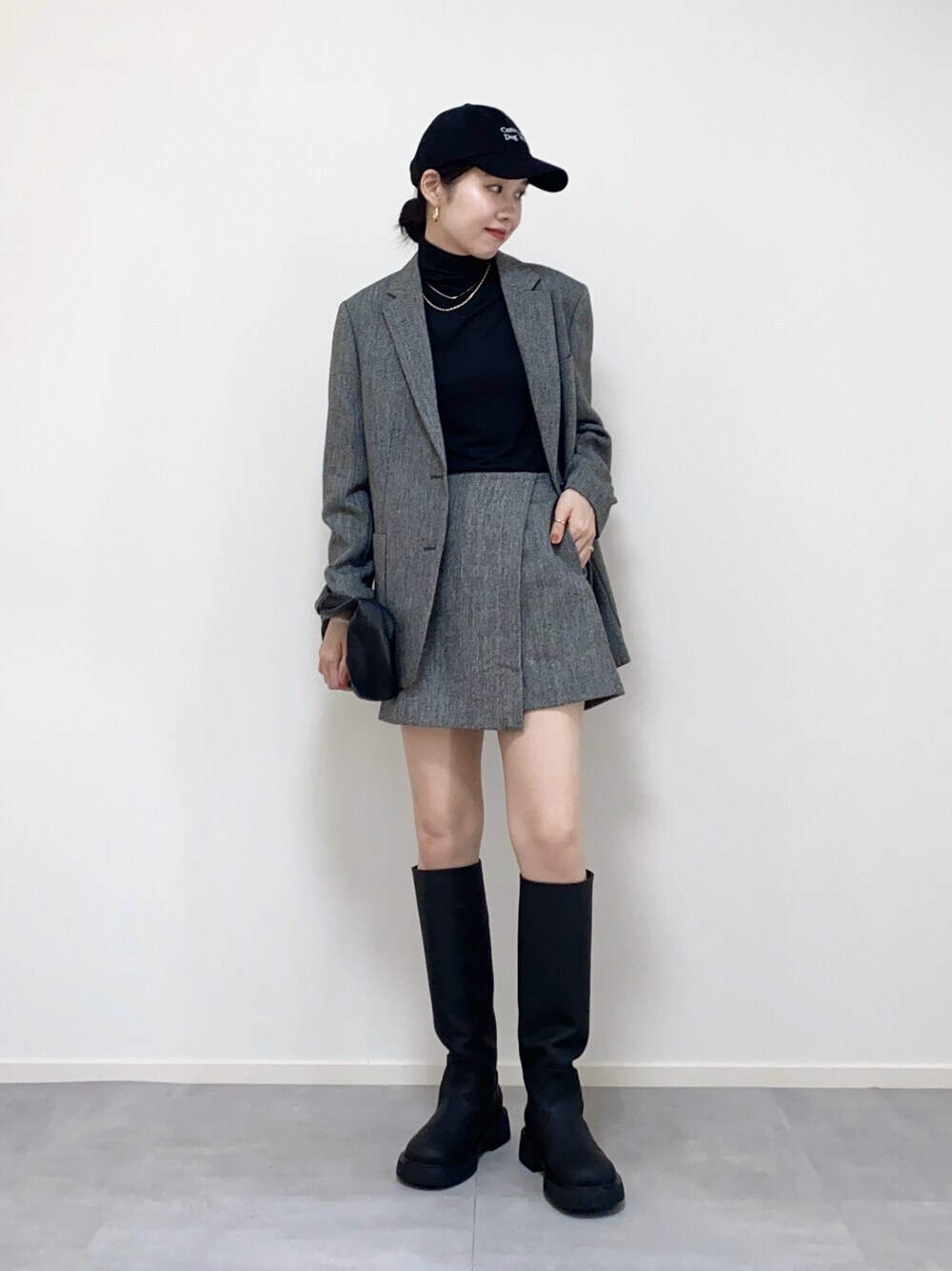 平時經常以休閒率性造型呈現的你,其實也可以透過短裙來呈現,選穿 A 字短裙可以修飾臀部顯瘦度之外,再加上大學 TEE 和襯衫疊搭,瞬間帶來層次豐富的造型重點,另外不妨換上俐落版型的西裝外套,讓穿搭注入一股個性時髦,隨性加上長靴就很好看。