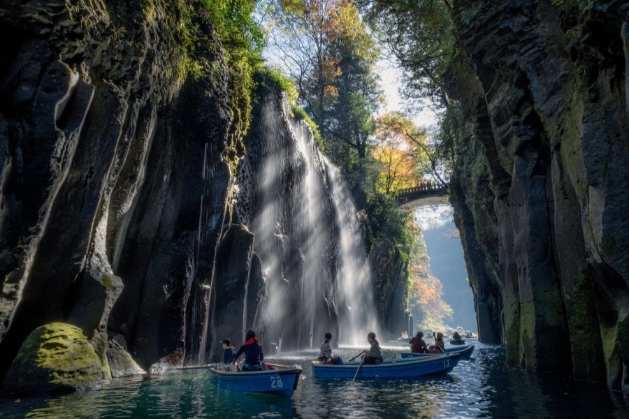 在這裡最適合的遊覽方式是租船遊覽,!從船上仰望高千穗峽的象徵—真名井瀑布,可以親身感受17公尺落差的震撼氣勢。與從步道遠觀相比,划船欣賞峽谷的壯麗與瀑布的澎湃,別有一番風味,更能體驗高千穗峽獨特的莊嚴與魅力。