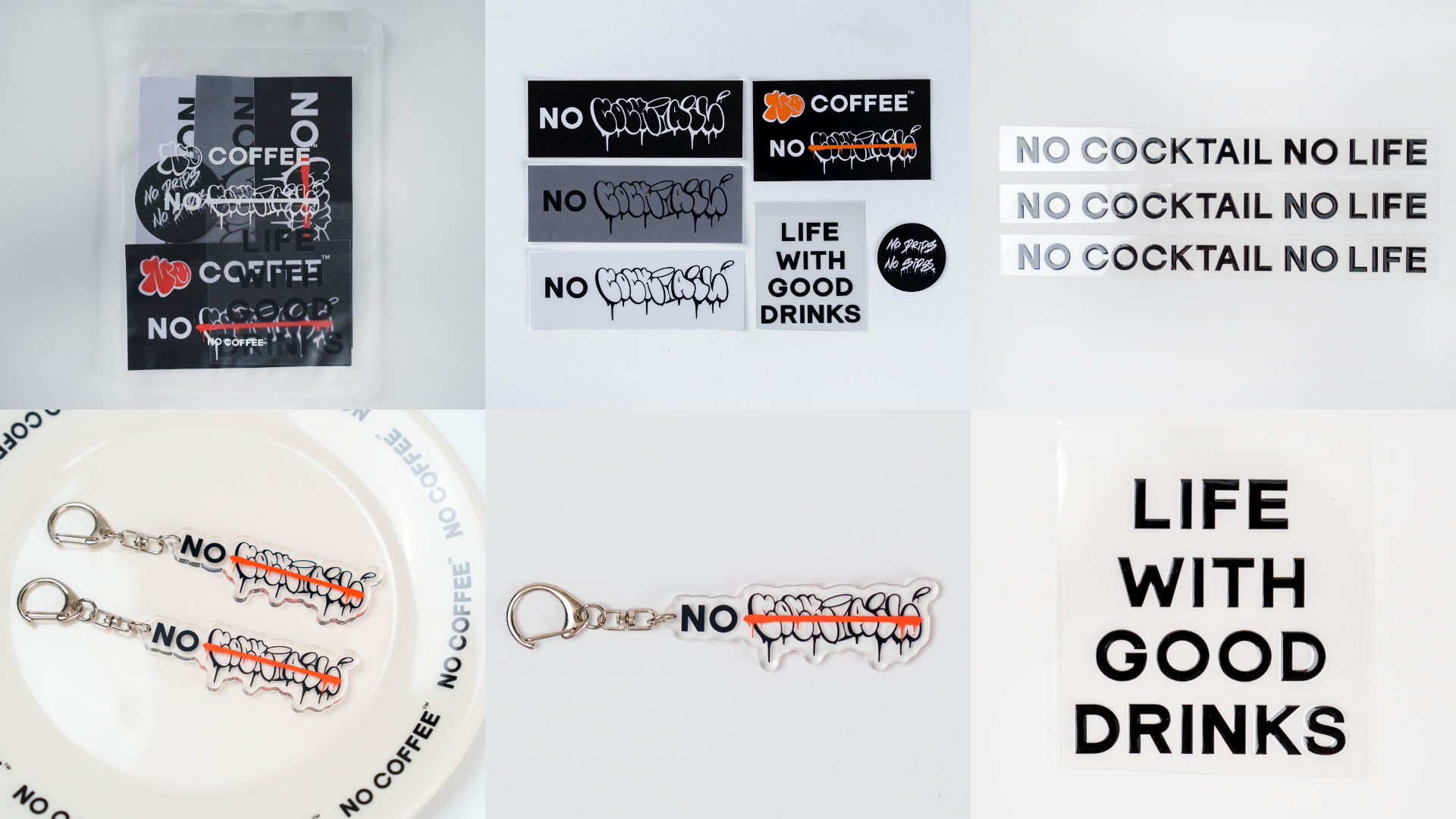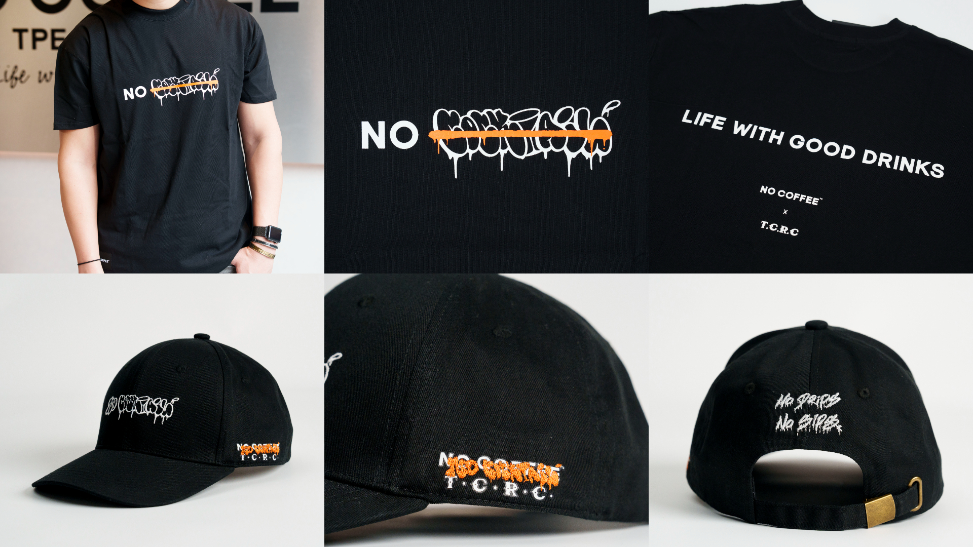 為紀念本次合作,NO COFFEE 與 T.C.R.C. 推出多款限量聯名周邊,包括NO COCKTAIL T-shirt、NC可調式硬頂刺繡棒球帽、NC塗鴉藝術泡泡貼紙組合(六入)以及NC塗鴉鑰匙圈,成為活動紀念與潮流收藏的完美選擇。
