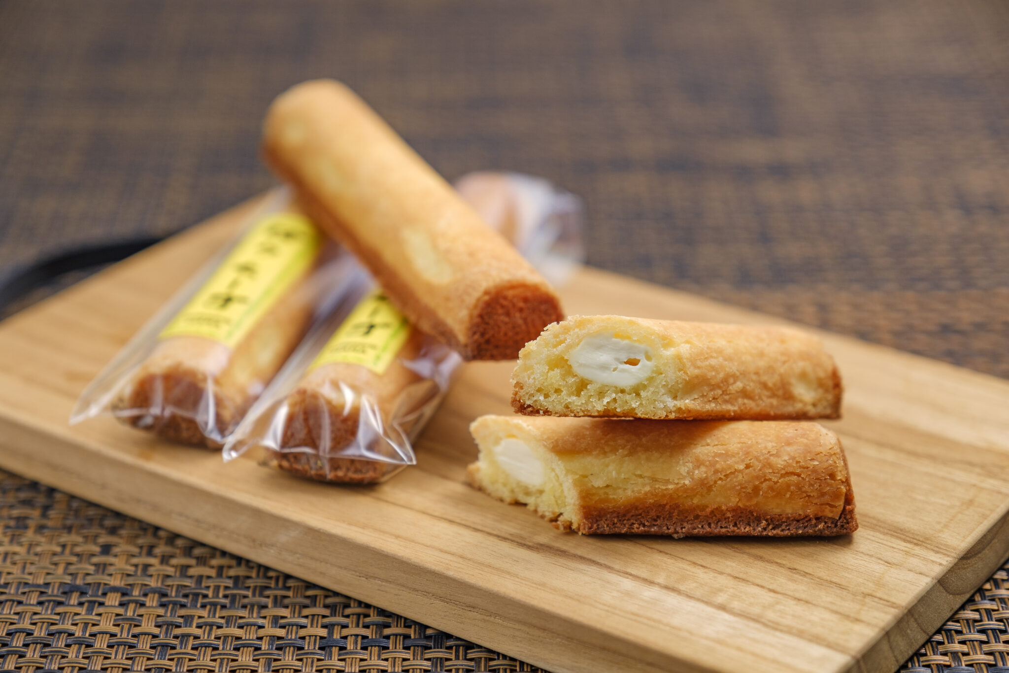 棒起司(ぼうちーず)是將宮崎名產「起司饅頭」巧妙改良為更方便食用的棒狀造型,酥脆的奶油餅乾外皮中包裹著濃郁的奶油起司內餡,外層再擠上杏仁奶油,經過細心烘烤而成。入口時,酥脆的口感與濃郁的奶油香氣交織在一起,成為深受歡迎的熱銷商品,每日銷量高達800支!