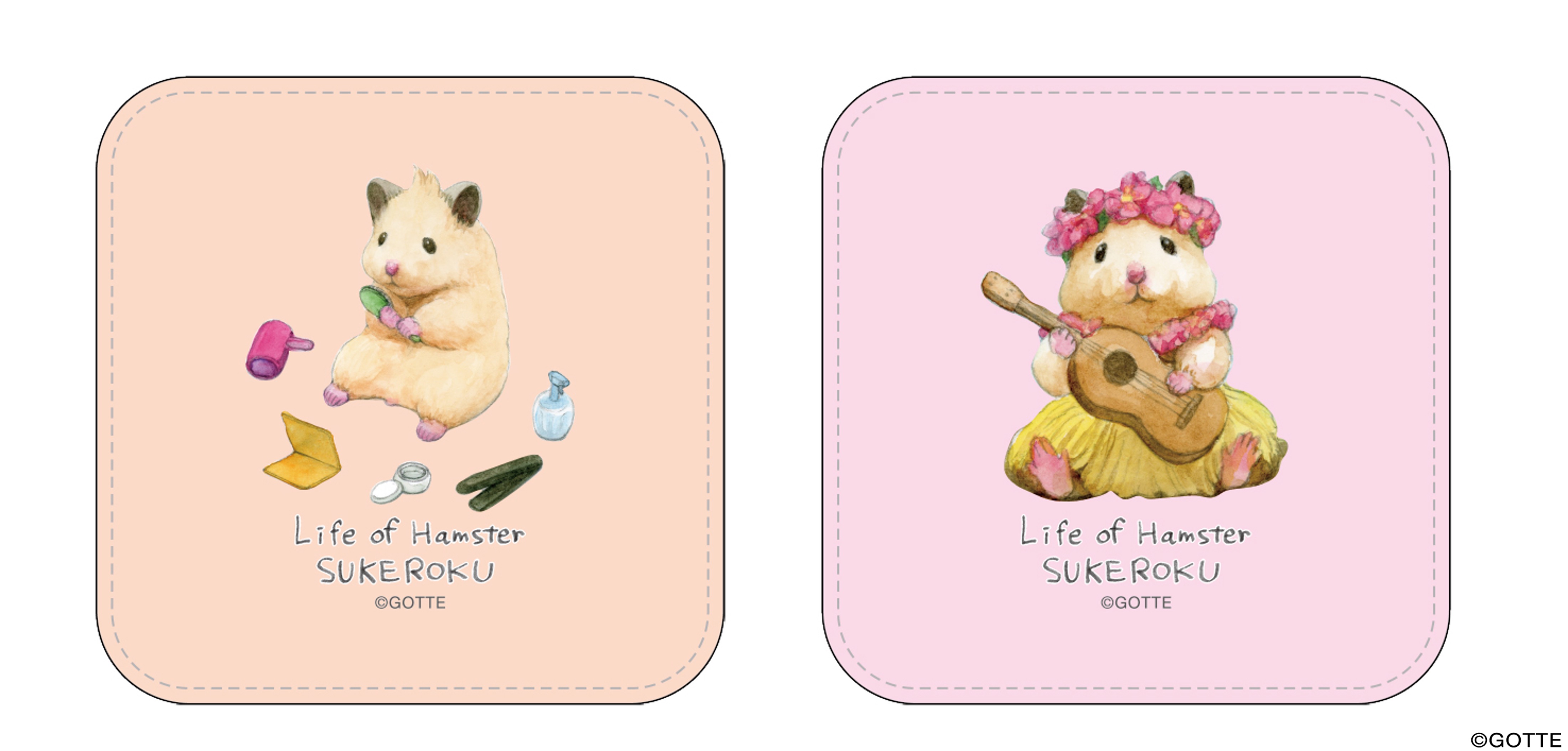 不只是隻小倉鼠!助六化身小廚師「隨身冷水瓶」,有穿上圍裙端出美味的食物的設計,還有坐在冰淇淋杯裡,頭上頂著櫻桃的冰淇淋款,還有藍色氣球款等三款,可愛到想讓人全套收走!不只帶身上還要穿身上!宿醉「T-shirt」次郎趴在露出痛苦表情的助六身上,還有助六與次郎一起整理的黑色款及助六帶著眼罩補眠的粉色款,穿上助六T-shirt瞬間可愛加倍!飾品人的困擾就交給「皮革飾品盒」,助六用離子夾夾出帥氣的造型,還有戴上花圈彈奏吉他的音樂款,兩款都幫你妥善收納身上的各種飾品唷!