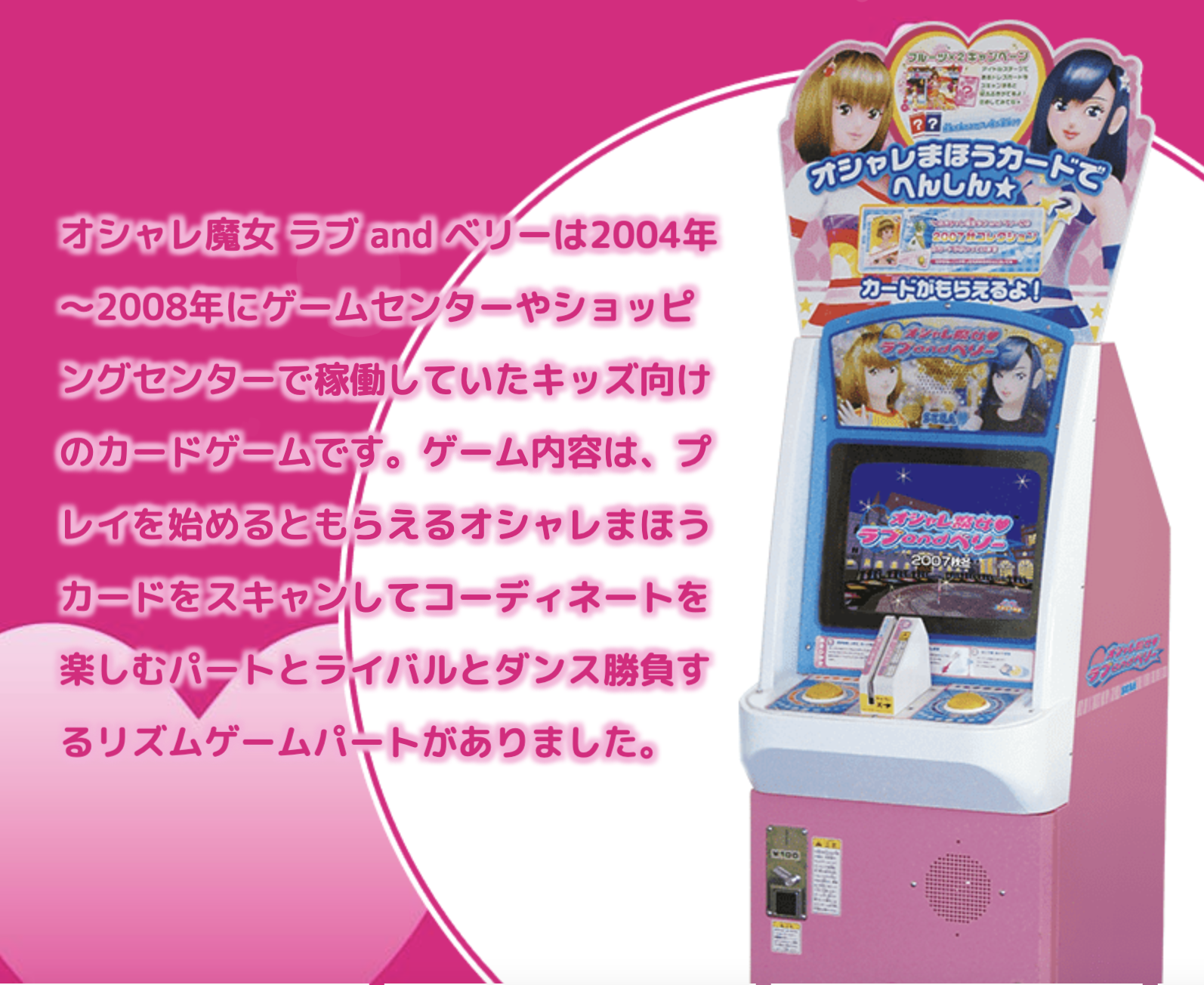 90年代出生的讀者們,看到文章首圖是不是已感到非常懷念呢?「時尚魔女 LOVE AND BERRY」為SEGA所開發的集換式卡牌女子向街機,活躍年代為2004~2008年,通常機台會設點在百貨公司、大賣場、遊戲中心等地。