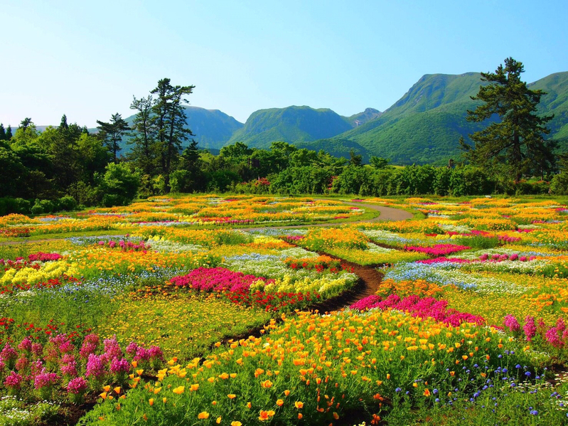 大分縣有名的除了海洋、溫泉以外,自然也有高原的存在,在竹田市的久住高原上,有著一座廣大的花園,其占地面積高達22萬平方公尺,盛開著多達500萬朵的花,此處便是久住花公園(くじゅう花公園)。