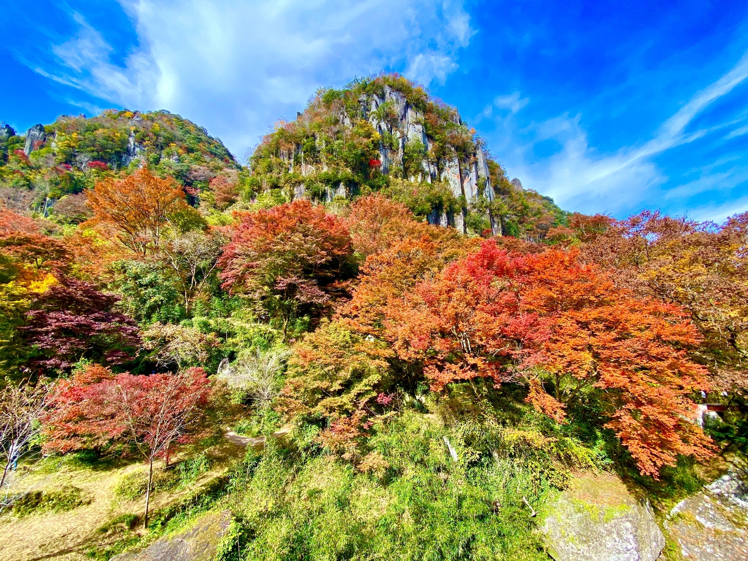 耶馬溪位於中津市,以紅葉的景色在日本出名,與京都的嵐山與栃木的日光,並稱為日本三大紅葉名所。在這之中最著名的風景名勝,是一個名叫「一目八景」的所在,可以在一個地方,將包括群猿山、夫婦岩等等八個奇岩盡收眼底,在紅葉季的時候前來,更可以將奇岩與紅葉全部收入自己的相機之中,是來到大分不可錯過的美景!