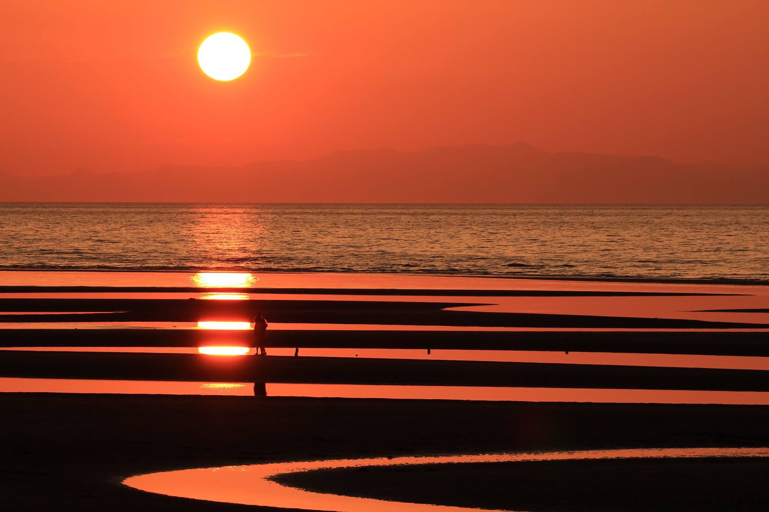 反射水面的夕陽與潮汐灘所構成的景色對比,再加上氣溫與天氣的不同,讓你造訪此地所看到的景色都是那麼的獨一無二,不論是情侶或是自己來看,絕對都能夠享受到這裡的美景的!