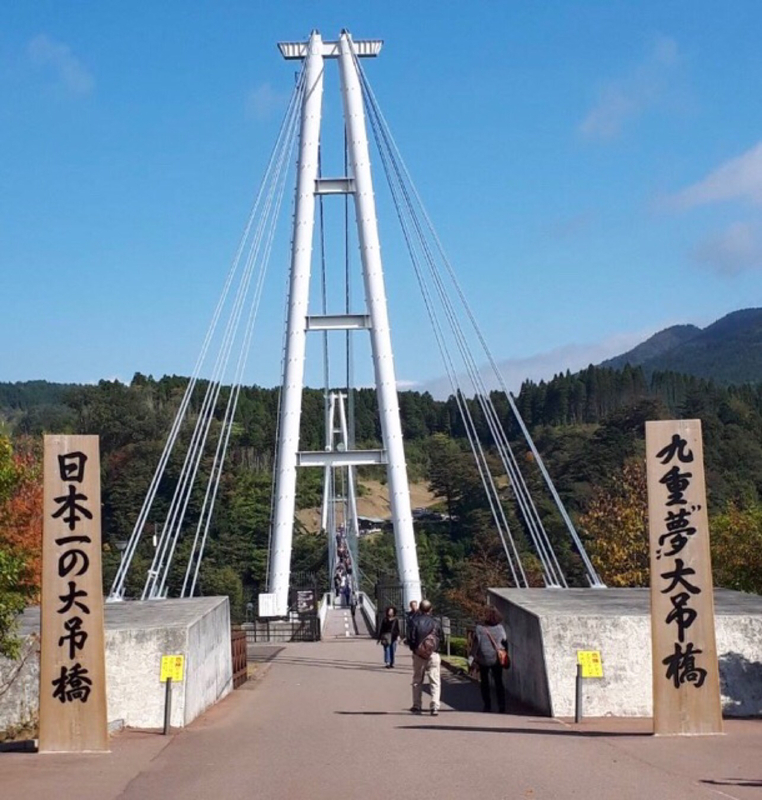 九重「夢」大吊橋(九重"夢"大吊橋)開通於2006年10月,是日本最高的人型吊橋全長390公尺,距離溪面有將近173公尺的高度,上面可承重大約1800人,讓人感受到日本的建築實力。除此之外,從吊橋也能看到包括震動瀑布(震動の滝)以及九醉溪的絕美自然景觀,不論是春天的櫻花或是秋天的紅葉,都是你來到大分縣不可錯過的好去處!