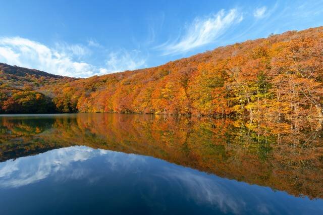 位於青森縣八甲田山麓、十和田八幡平國立公園內的「蔦沼」,是由蔦七沼(蔦沼、鏡沼、月沼、葫蘆沼、菅沼和赤沼)之一組成的湖泊群。蔦沼因湖面如鏡般倒映樹木景致的絕美倒影而聞名,是青森縣內極受歡迎的景點之一,特別是楓葉季節時在朝陽的照耀下呈現如火焰般的「朝燒」絕景,不僅常常被廣告拿來取景,也被評為一生必看的美景之一,因此吸引眾多遊客前來朝聖。