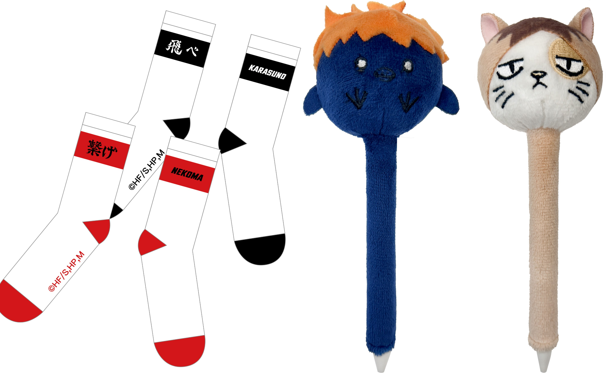 《排球少年!!》福袋──形象可愛並可掌握在手中的「日向烏鴉、研磨貓咪絨毛筆」(隨機乙款),可低調穿上應援的「烏野、音駒應援旗襪子」(隨機乙款),喜歡兩校不虧的好選擇;《咒術迴戰》福袋──兩人無敵的高專時期「五條&夏油雙面方形抱枕」,所有美好就此封印福袋中;《怪獸8號》福袋──提供收拾雜物的怪物清潔公務車造型「摺疊收納箱」,以及極具存在感的「保科超大胸章」,買好坐等第二季動畫到來。