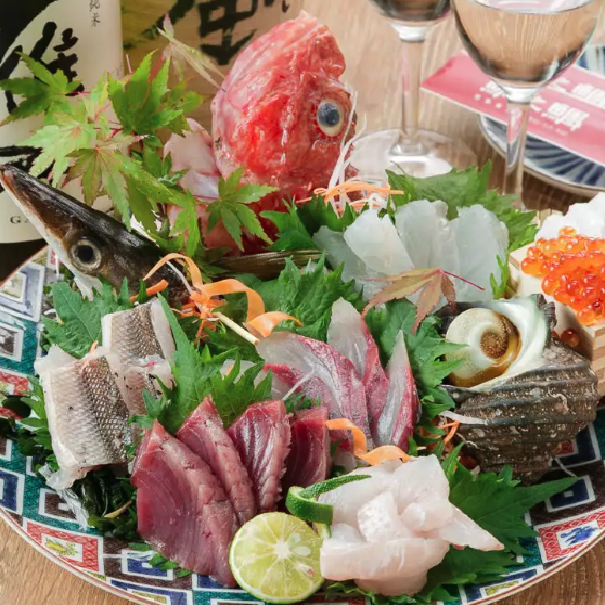 刺身是指將生魚介類切成薄片後,搭配醬油、新鮮山葵、磨碎的生薑或細切白蘿蔔等調味料享用的一道料理。