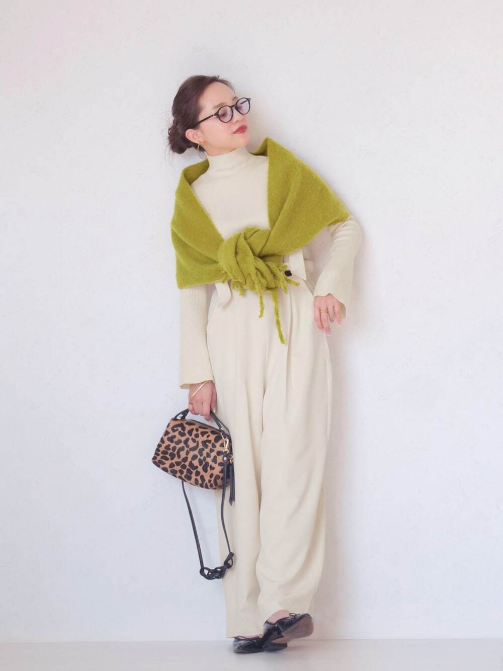 另外,除了圍在脖子的圍法風格,其實也可以透過圍巾變換成披肩,例如不刻意的披在手臂後,從胸前打兩個結,或者把圍巾掛在脖子上,且將兩邊拉開自然垂墜,瞬間打造慵懶鬆弛感的日系印象。
