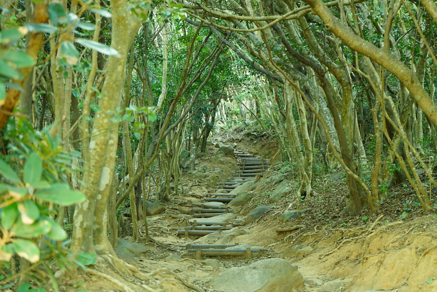 而在穿過被綠葉給包覆的隧道後,步行約十分鐘即可抵達島上的景觀台,可以從景觀台上一覽島上的風景喔!