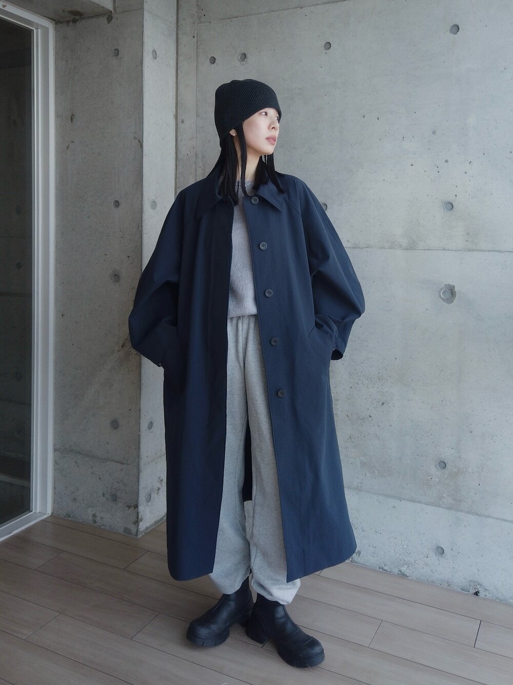 春季造型以「黑、灰、白」混搭出日系街頭時髦風格04.淺灰 + 深灰 + 黑
