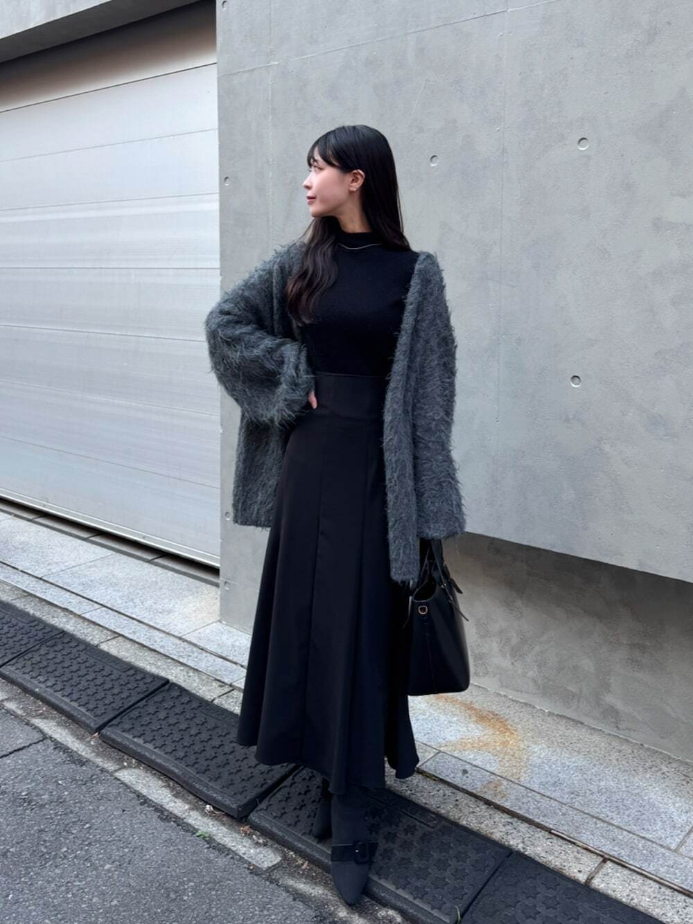 春季造型以「黑、灰、白」混搭出日系街頭時髦風格01.黑 + 黑