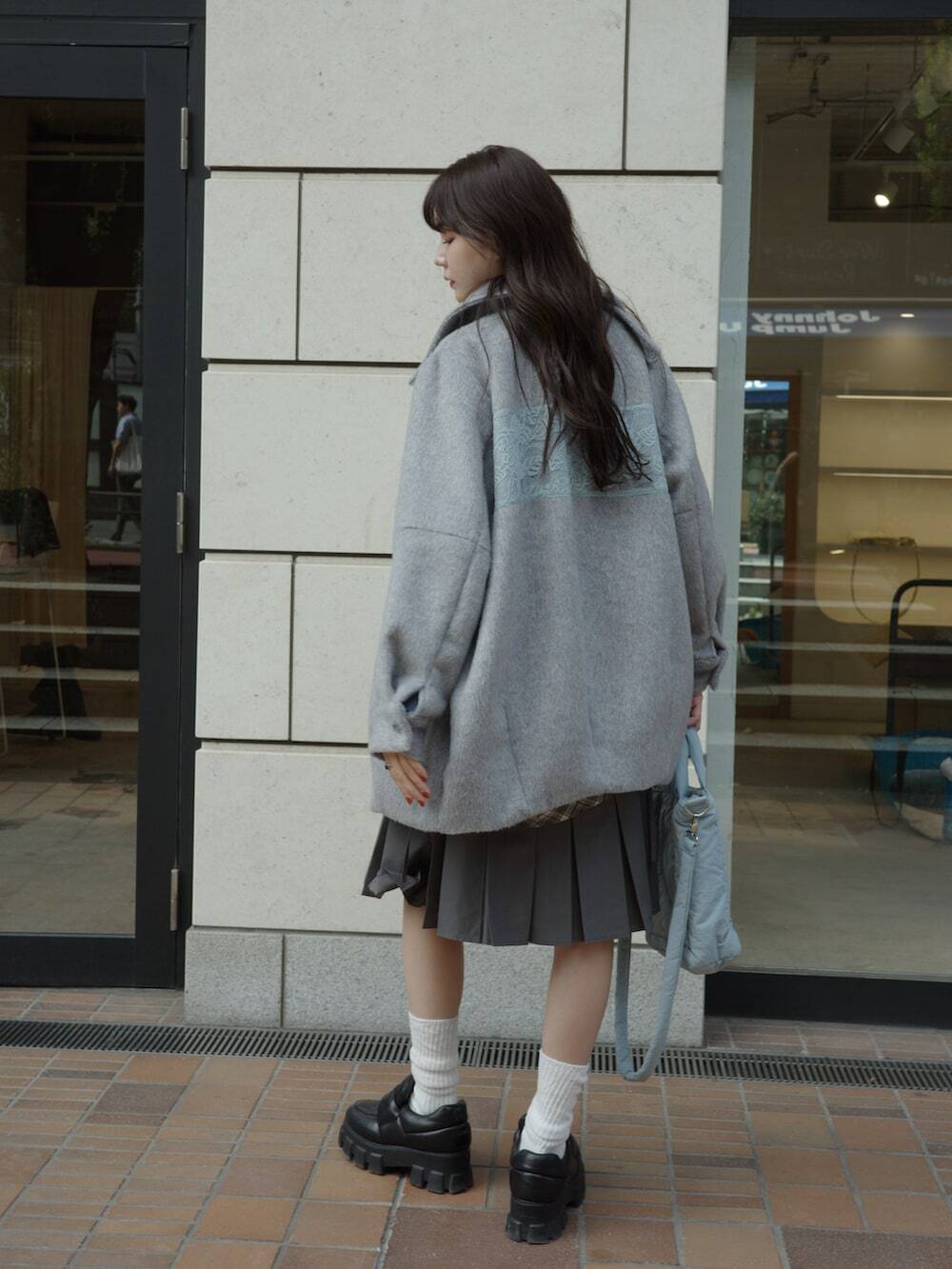 春季造型以「黑、灰、白」混搭出日系街頭時髦風格02.淺灰 + 深灰