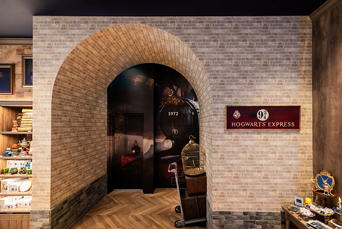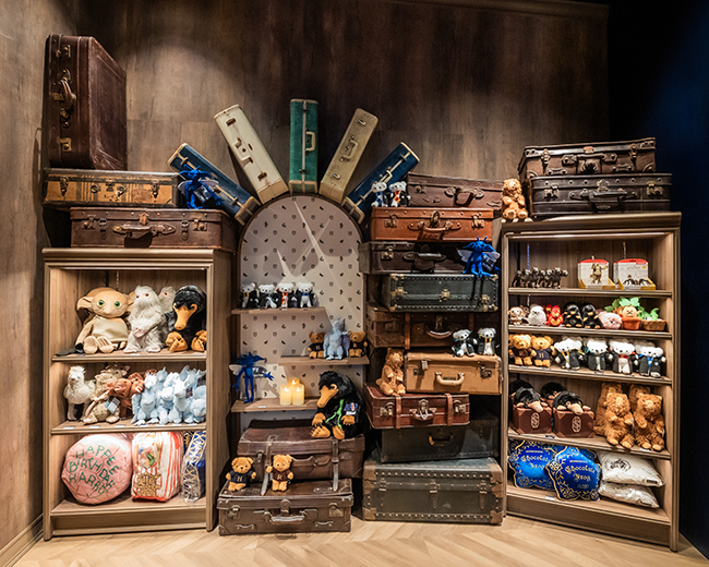台灣首店「Harry Potter - Mahou Dokoro」的店舖設計細節滿滿,讓每位踏入店內的粉絲都能感受到魔法氛圍。店內迎面而來就能見到巫師袍、針織圍巾以及Mahou Dokoro原創的「絨毛小熊」等經典四學院商品,側面則有以行李箱打造的拱型設計,陳列著多款奇獸周邊,眾多原創商品都與台灣首店同步亮相。作品中最具代表性的九又四分之三月台也將重現於台灣首店,令人雀躍的霍格華茲特快車彷彿即將駛入站內,搭配推車完美還原電影中的經典場景,成為粉絲必拍的打卡點。店內也能看到1:1還原的掃帚光輪2000,牆面則掛著許多生動有趣的霍格華茲城堡肖像畫;向上一看,是霍格華茲入學信飄散在空中;仔細尋找,還能見到藏身在店內的家庭小精靈多比,處處是驚喜。