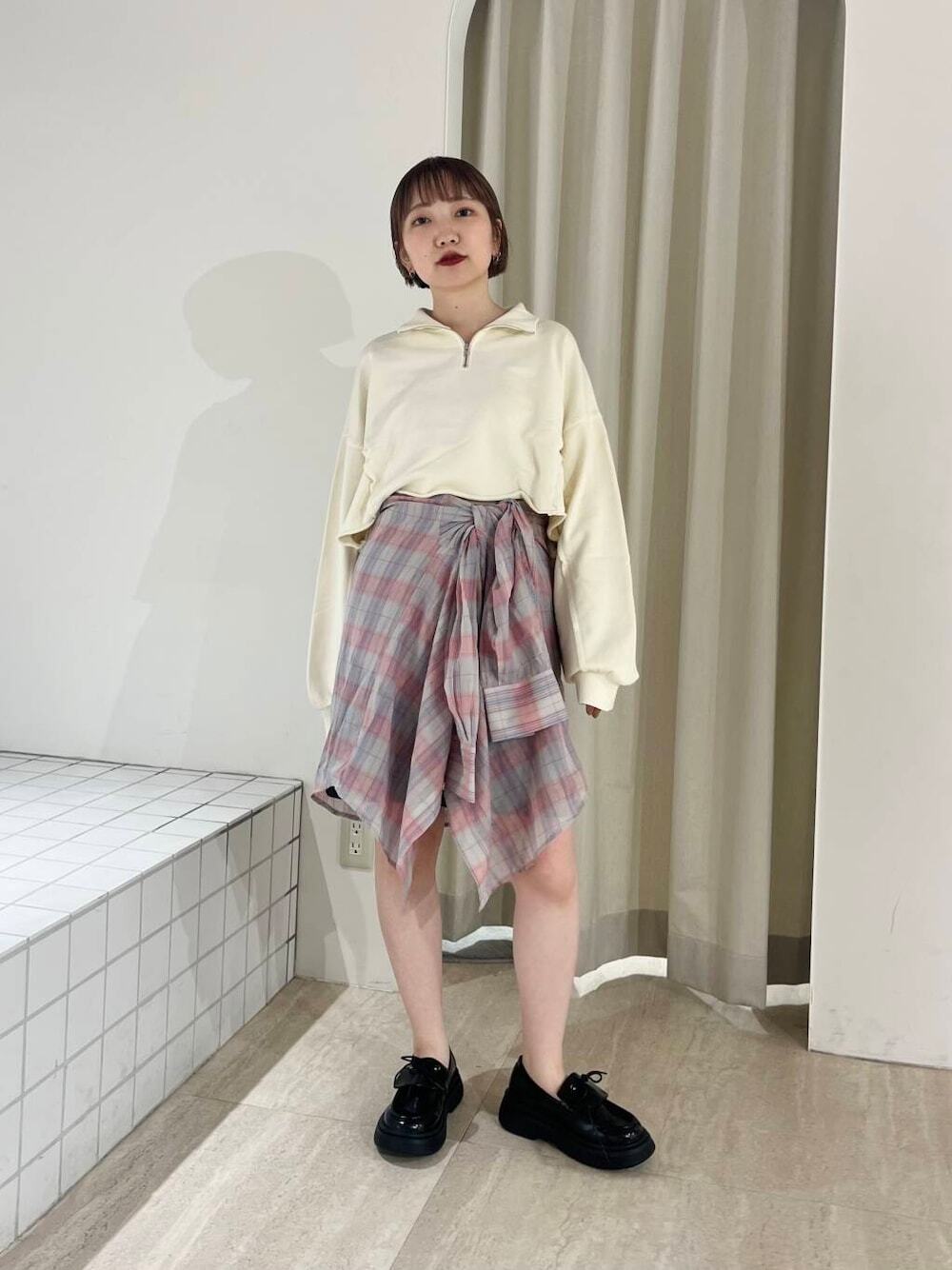 LOOK 03.格紋襯裙 + 長褲