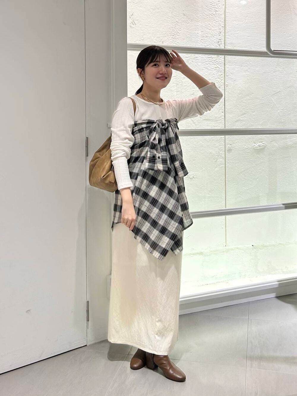 LOOK 04.格紋襯衫裙 + 長裙