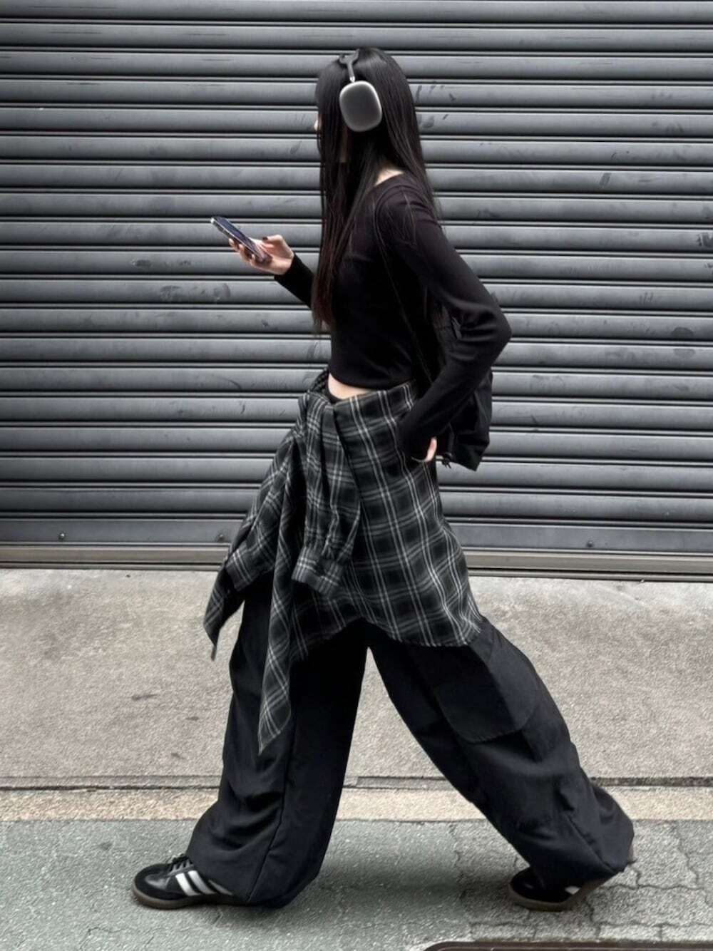 當想展現率性街頭印象的時候,推薦把格紋襯衫隨性綁在褲子外,結合格紋圖案能讓整體增加重點特色,上衣選搭半開襟衫、短版上衣都很合適,如果希望讓自然度更加倍的話,透過寬褲混合使穿搭氛圍更顯著。