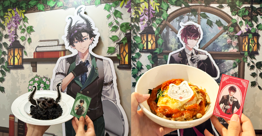 Ren Zotto以名字的諧音與黑色系形象為靈感,推出「星河墨魚燉飯」;而Ren對音樂的熱情與外星王子的身份則化身成「宇宙冰淇淋可樂」,讓粉絲從餐點中感受專屬他的強烈印象!Ver Vermillion 以惡魔與紅寶石的雙重主題,將他的高貴形象與韓國背景相結合,推出「紅寶石泡菜韓式拌飯」及「惡魔之血氣泡飲」,帶出他的神秘魅力。