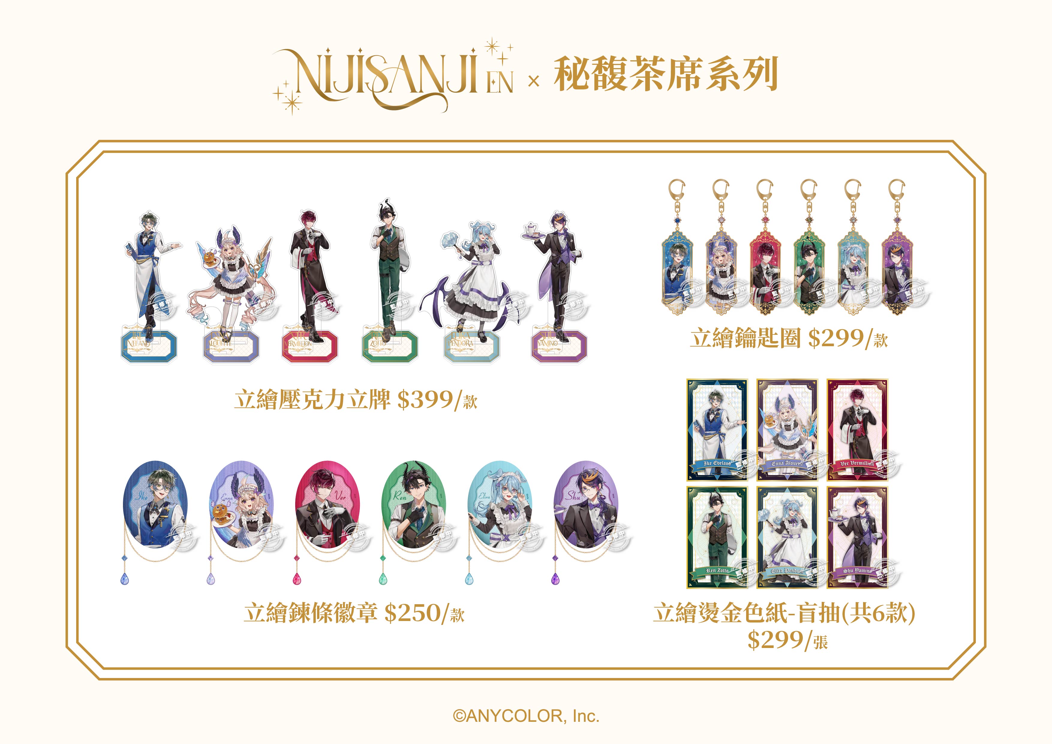 ■ 活動內容:現場或FANFANS粉粉官網購買《 彩虹社 NIJISANJI EN 》系列商品,單筆消費每滿1300元,就可以獲得限量「磨砂冷燙票卡」(共6款,隨機贈送),精緻質感完美呈現Liver們的迷人樣貌,更作為書籤使用!