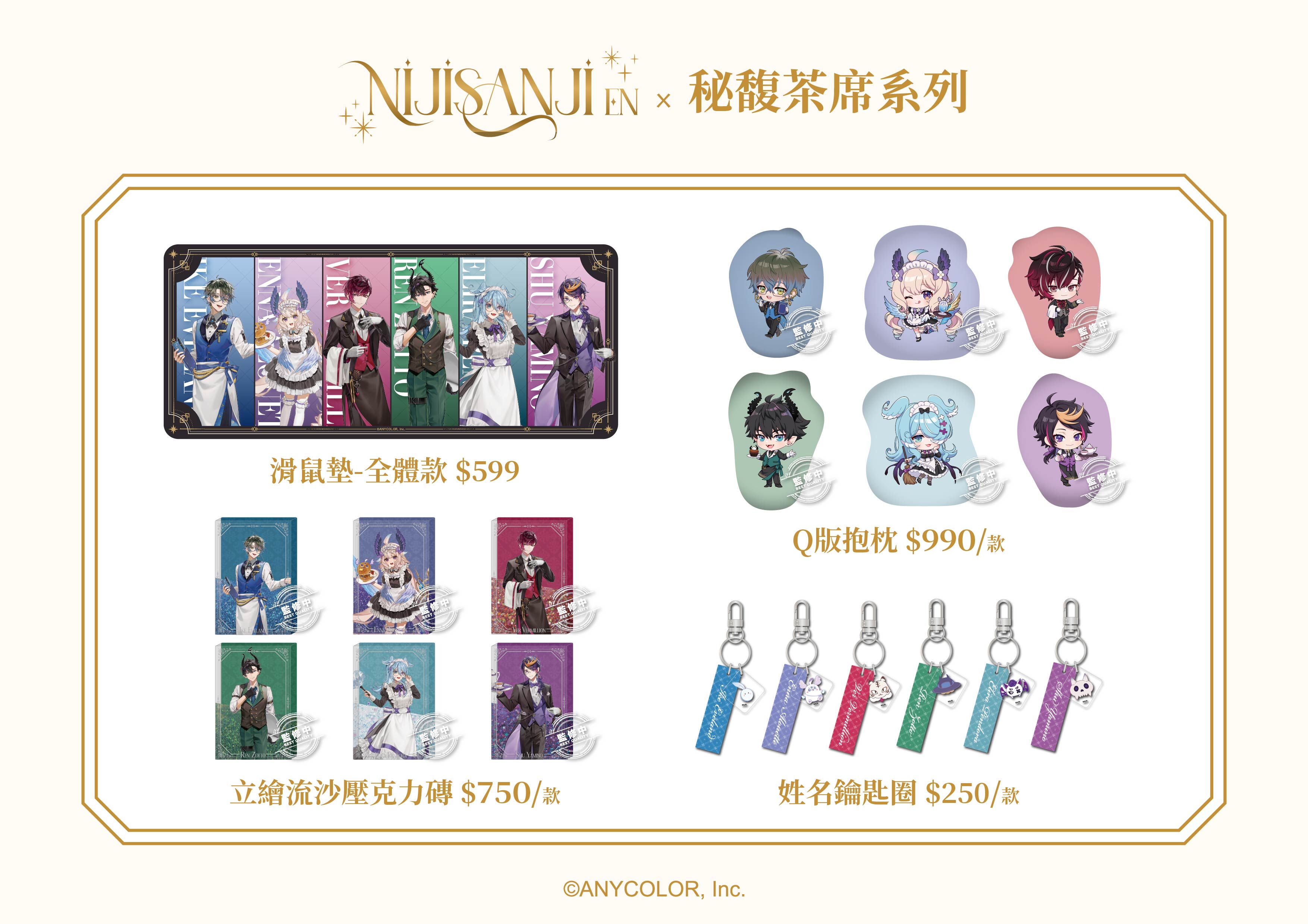 金屬鑰匙圈結合立繪,呈現出Liver限定服裝及本次主題的華麗質感;壓克力鑰匙圈運用Liver們的名字及粉絲形象,精巧可愛的設計,能夠自由裝飾在包包或個人隨身物品上!更有杯墊、滑鼠墊、抱枕等周邊,在居家及辦公桌使用,打造專屬療癒空間。讓Liver們遍佈生活中的每個角落,陪你度過日常時光!
