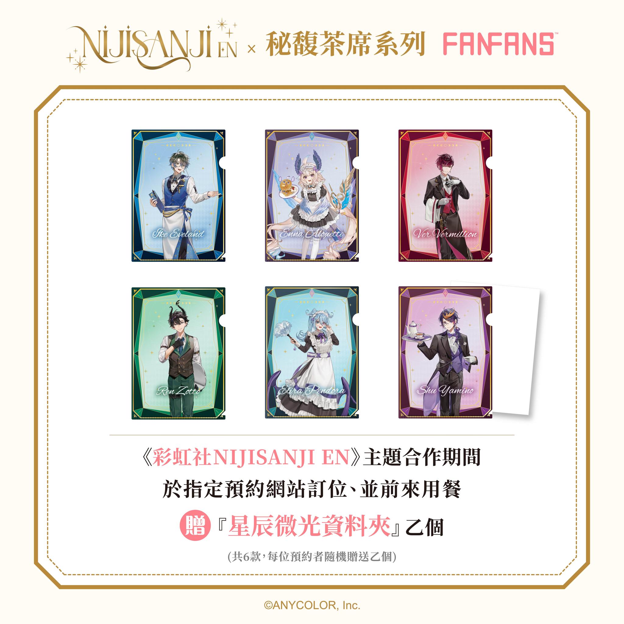 ■ 活動內容:合作期間只要事前上「FANFANS CAFÉ」指定預約網站訂位,前來用餐即贈隨機「星辰微光資料夾」(共6款),只送不賣粉絲必收藏!欲前往用餐,請記得先使用網路訂位。
