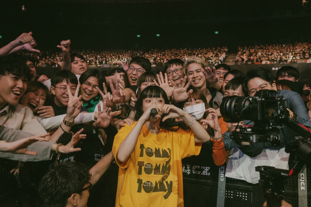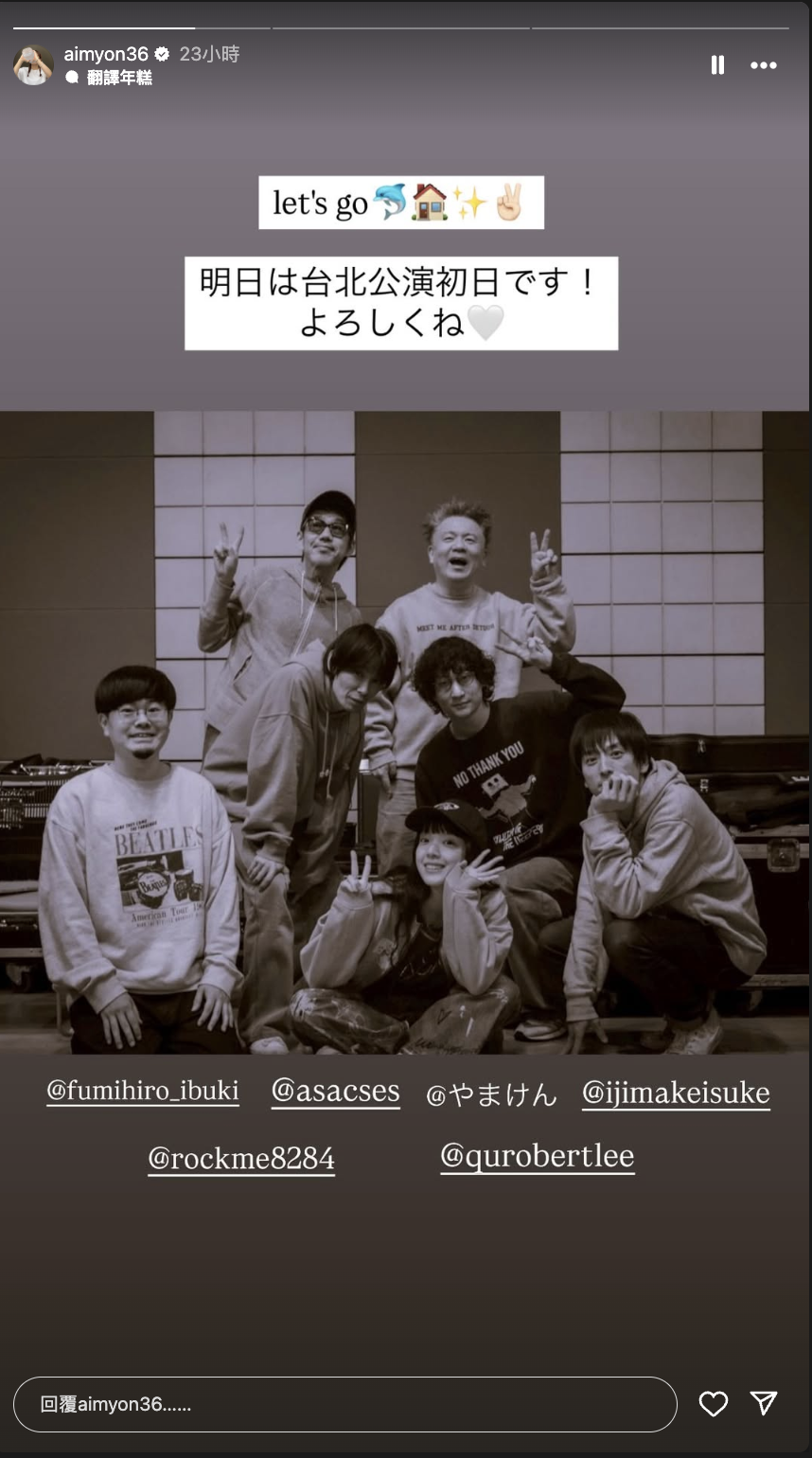 接著切回日文分享終於來到台北的喜悅,也坦言雖然擔心語言會有隔閡,但看到大家熱烈的反應後,便開始花式地先用日文、再用台語的「水啦~」來稱讚傳說中人均N1的台灣觀眾。