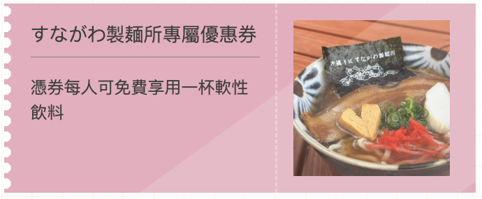 「すながわ製麺所」的沖繩麵上放著一大片三層肉,大到幾乎超出碗邊,非常推薦給想大口吃肉的人。而麵條則可選擇一般麵或生麵,建議一定要試試生麵!生麵滑順有嚼勁,讓人一吃就上癮。