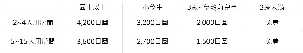 5人房 5,000日圓~16,200日圓/人(可1人入住,最多5人)